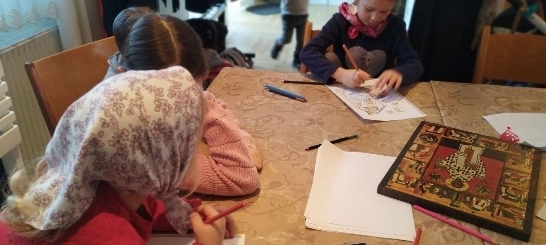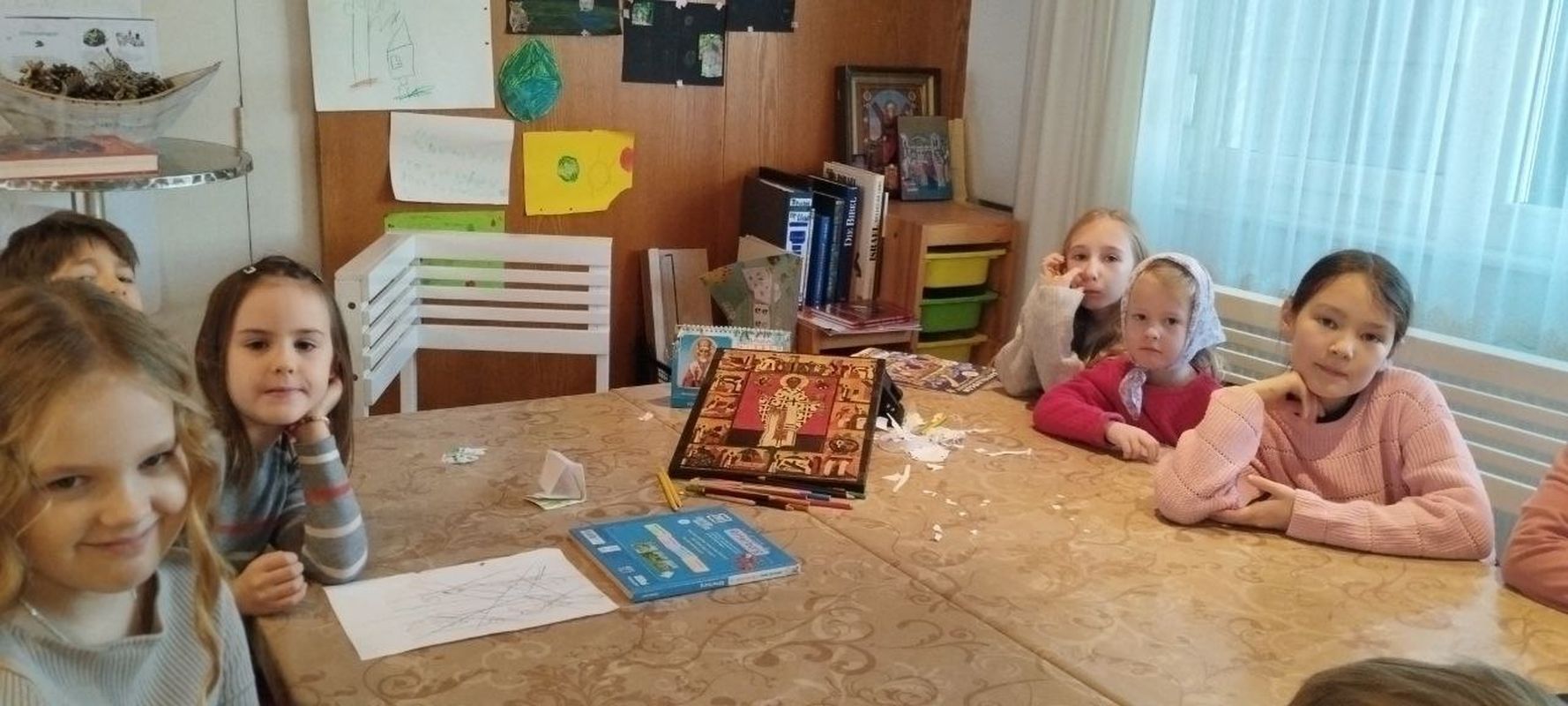 Во время литургии в трапезной храма Наталией Кригер проводилась детская воскресная школа. Главной темой был рассказ о святителе и чудотворце Николае.