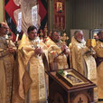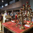 Божественную литургию возглавил благочинный Восточного округа протоиерей Георгий Антонюк. Ему сослужили игумены Андрей (Готфрид) (г. Баден-Баден), Максим (Шмидт) (г. Ульм); священники Михаил Бук