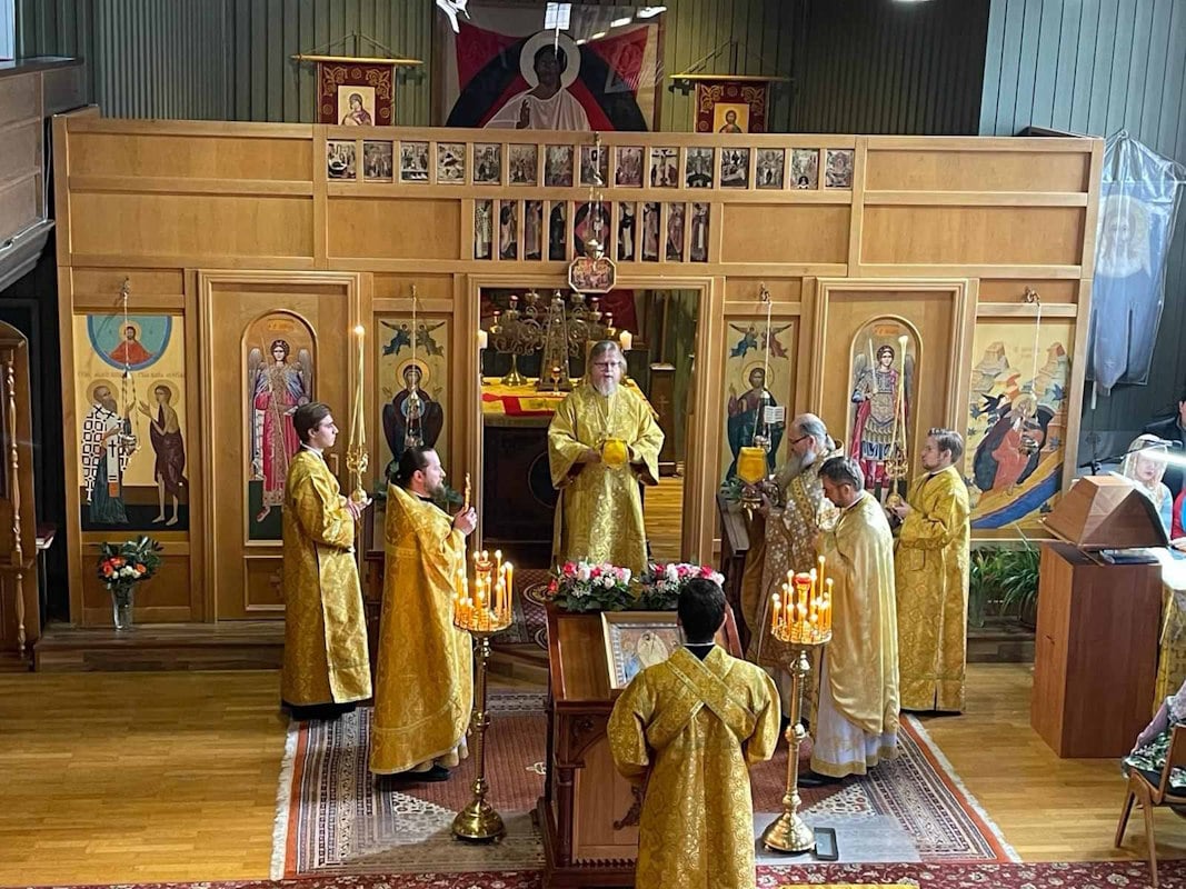 Его Высокопреосвященству сослужили и.о. благочинного Южного округа протоиерей Михаил Дронов, и.о. настоятеля прихода иерей Димитрий Максимович, иерей Алексий Волчков (Санкт-Петербургская епархия), протодиакон Арчил Чхиквадзе, диакон Евгений Кик.