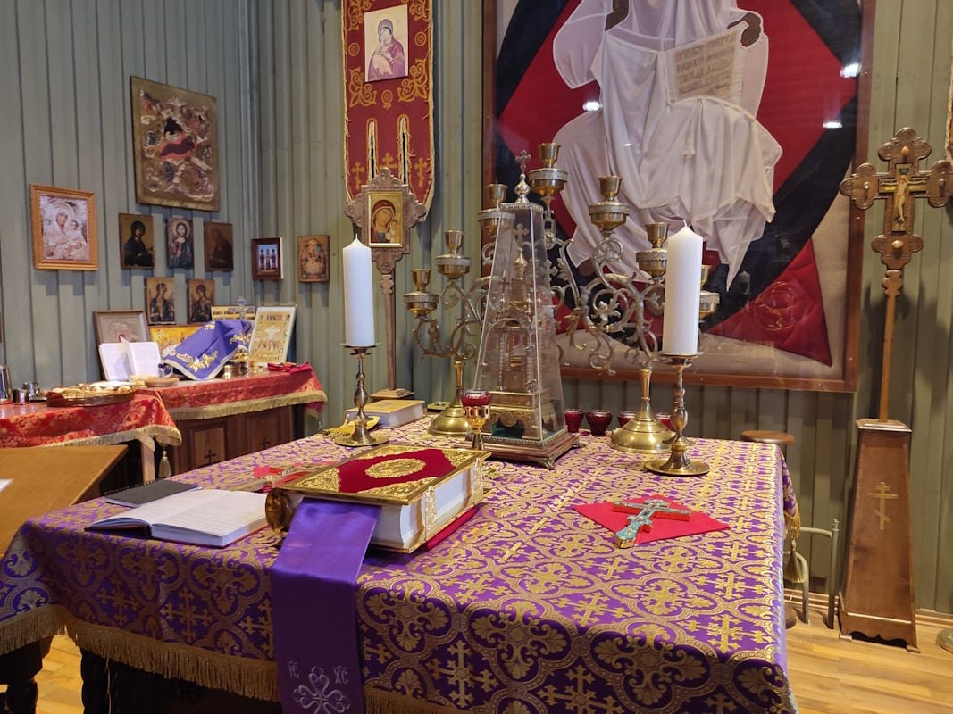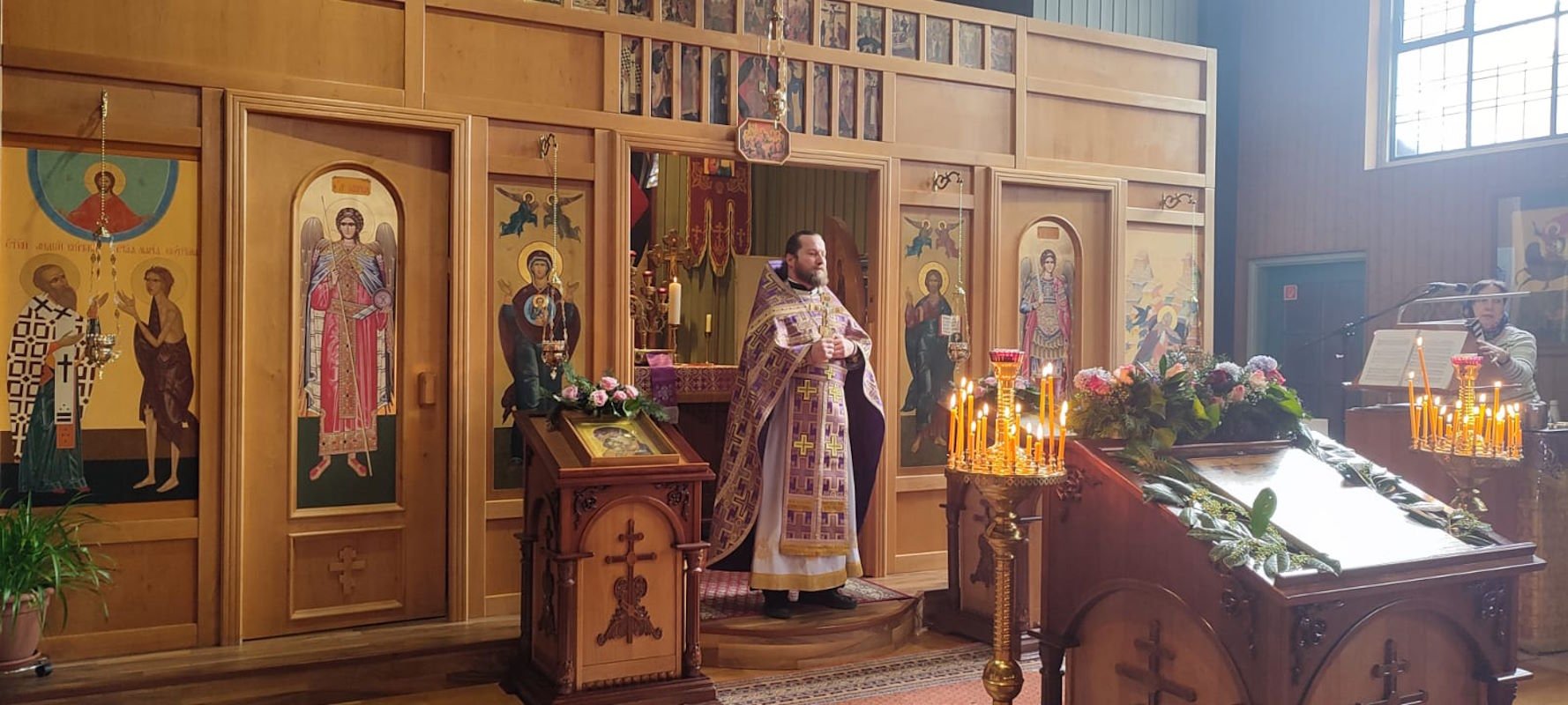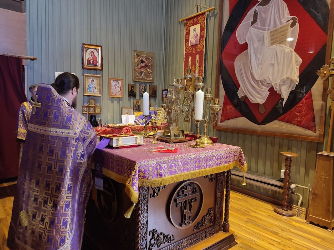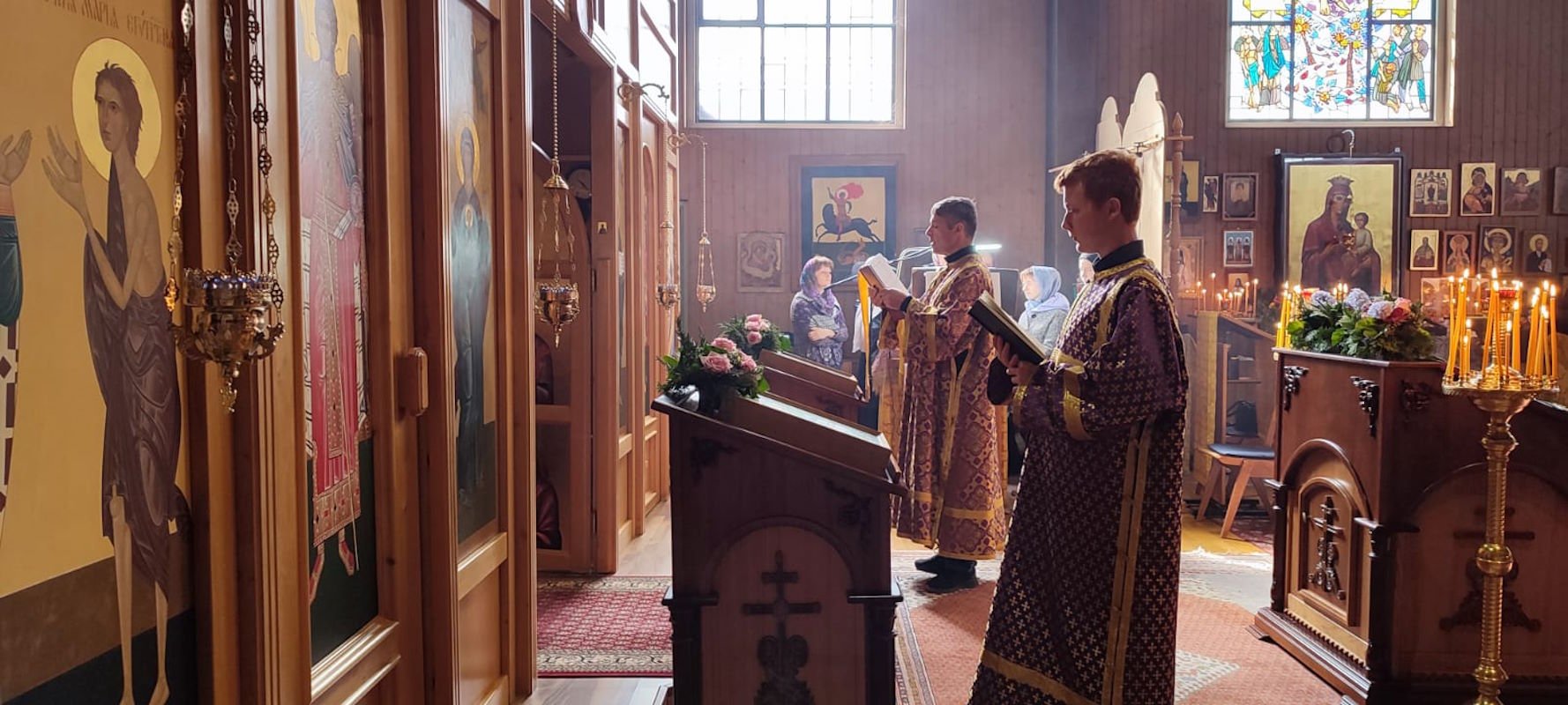 Службу совершал и.о.настоятеля храма иерей Димитрий Максимович. Богослужебные песнопения исполнил приходской хор под руководством регента Наталии Дьячиной.