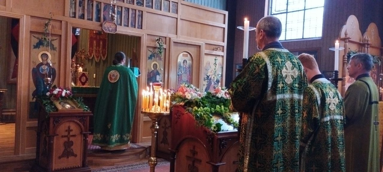 Die Predigt war dem Thema der Herabkunft des Heiligen Geistes auf die Apostel gewidmet. Nach der Liturgie wurden drei kniende Gebete gelesen.