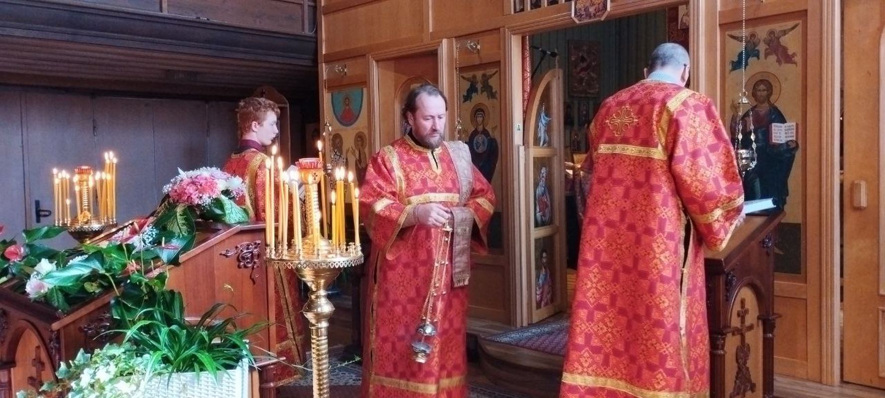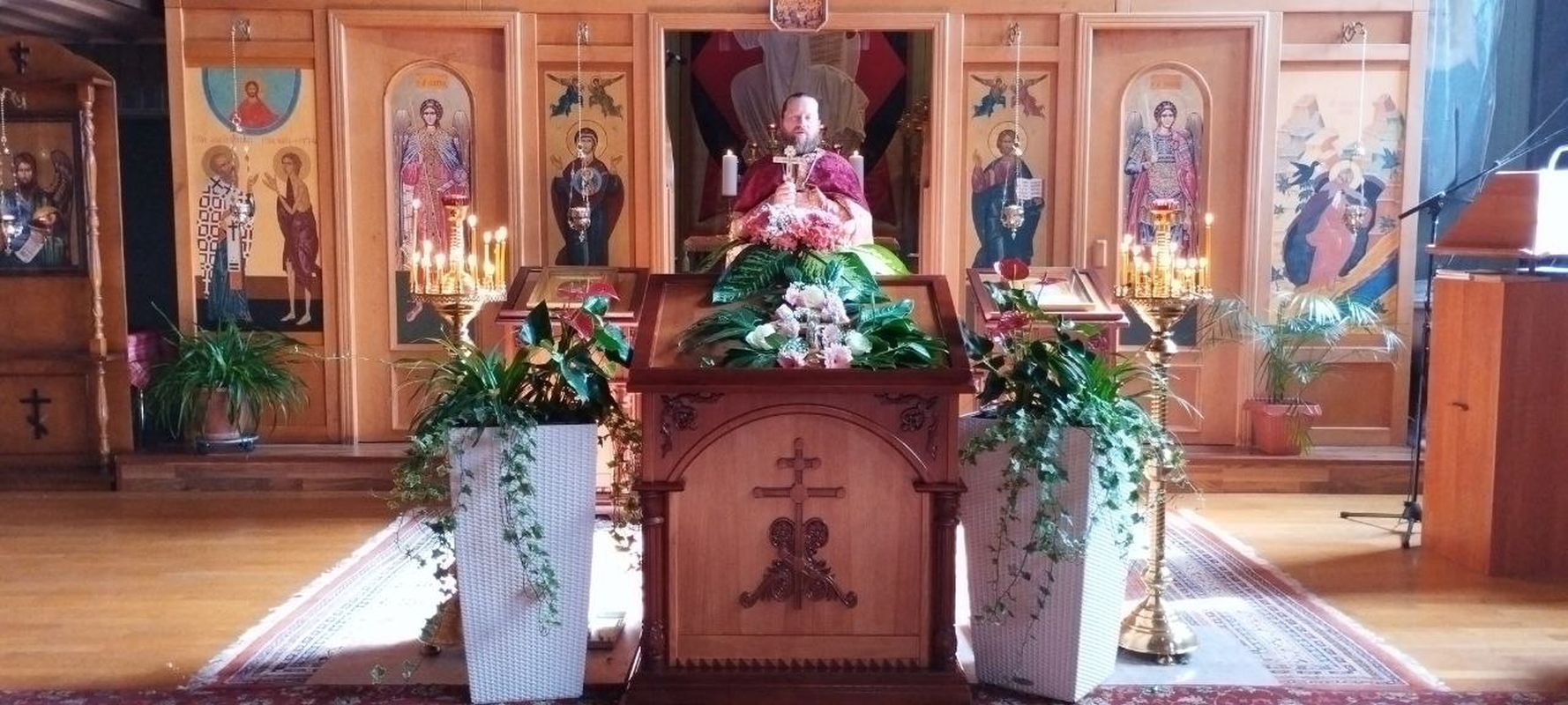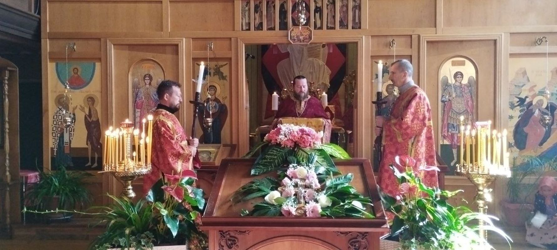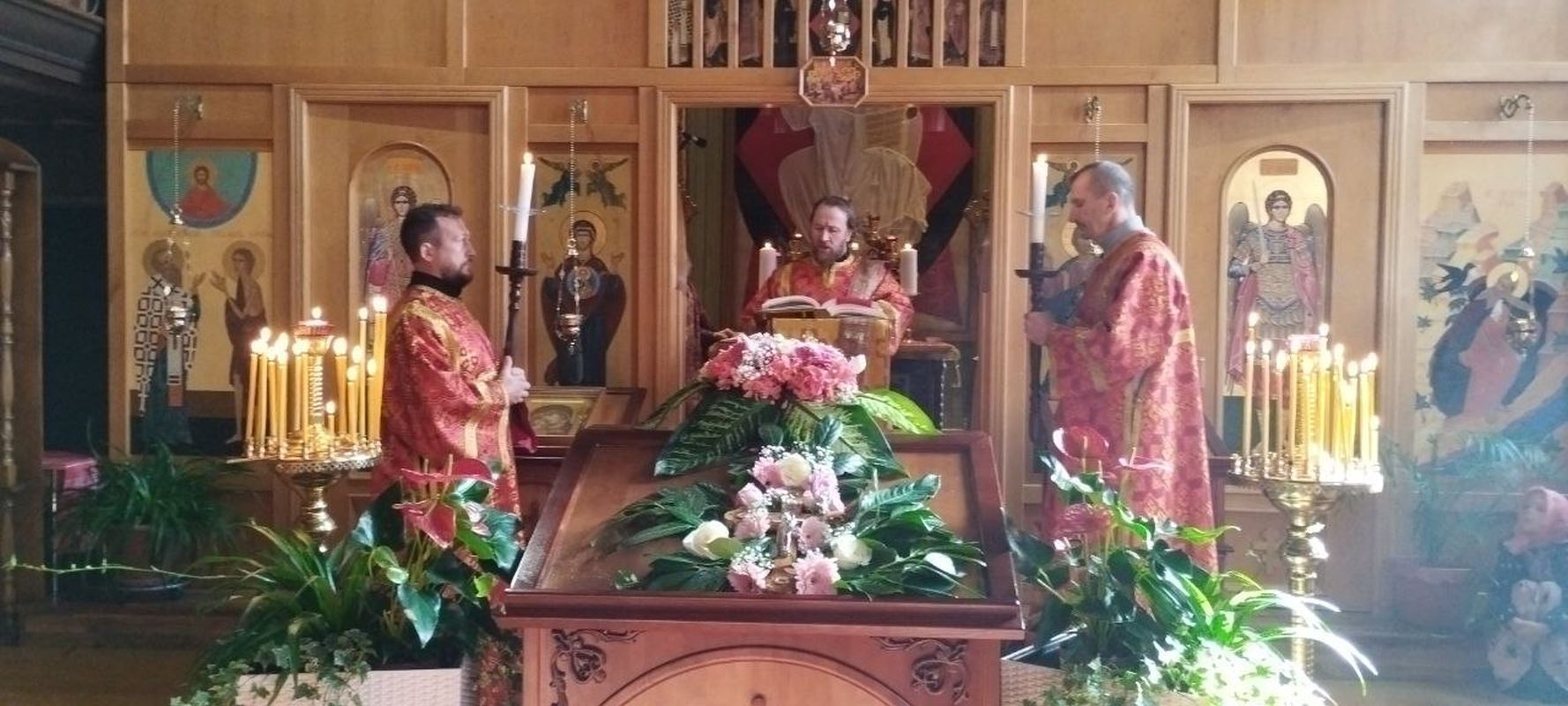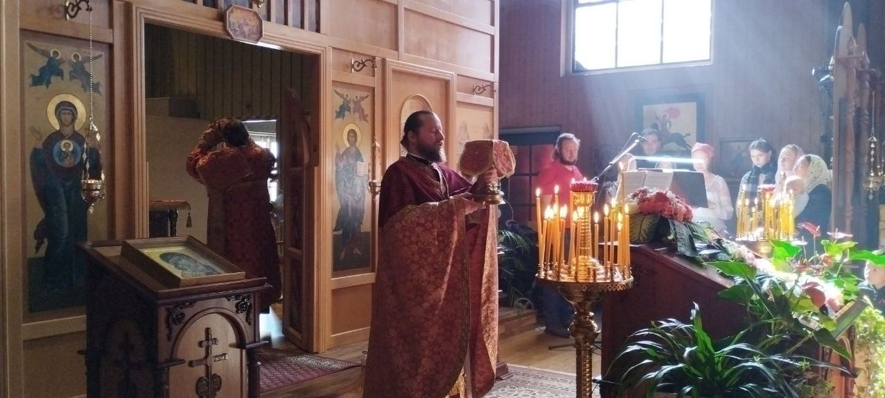 Der Gottesdienst wurde vom amtierenden Rektor des Tempels, Priester Dimitry Maksimovich, gemeinsam mit Diakon Evgeniy Kik durchgeführt. Die liturgischen Hymnen wurden vom Pfarrchor unter der Leitung der Regentin Natalia Dyachina aufgeführt.