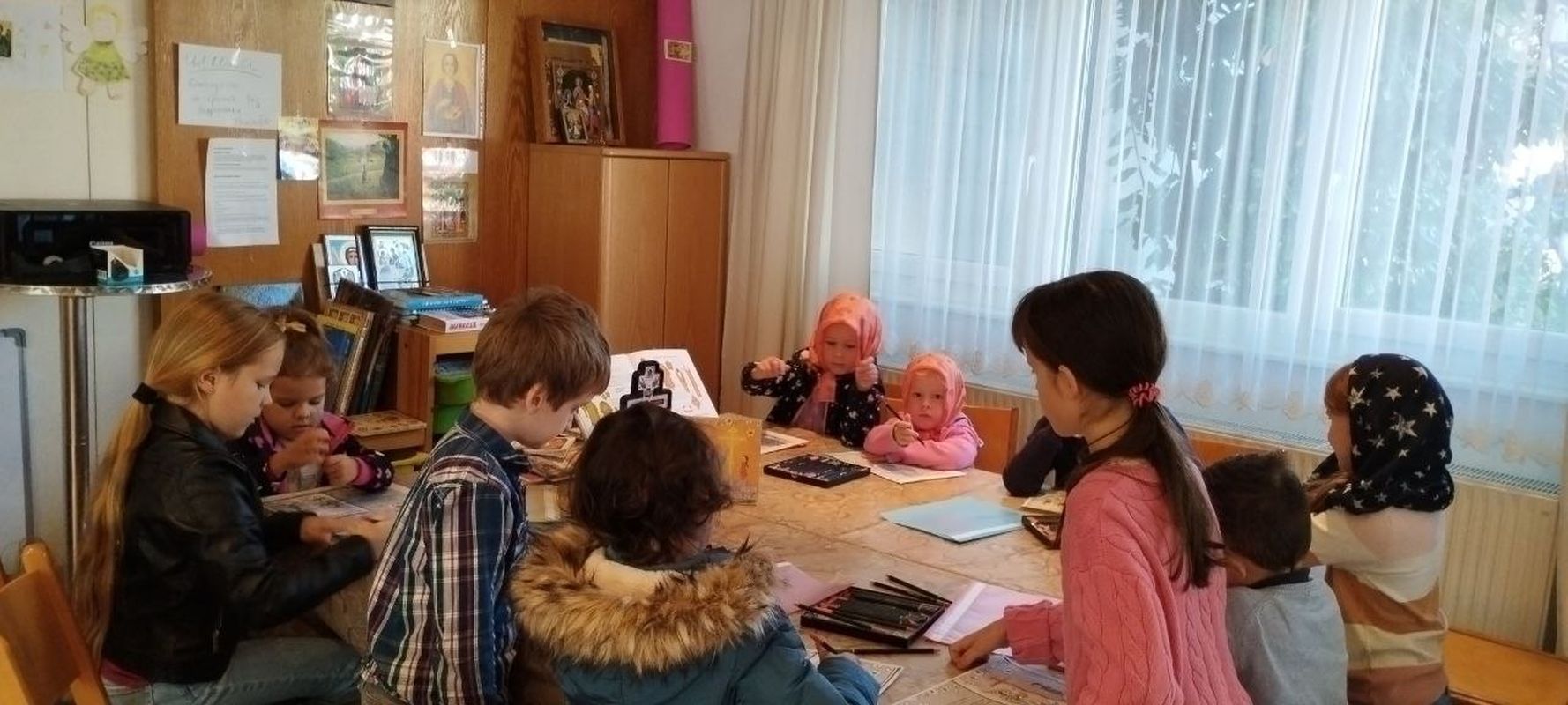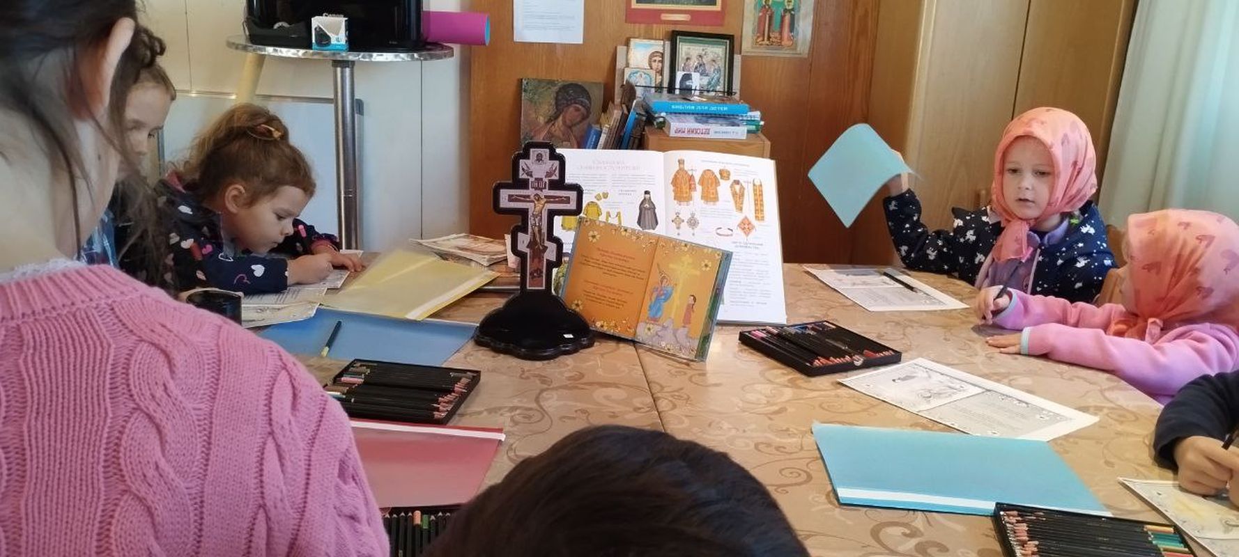 Während der Liturgie fand im Refektorium der Kirche eine Sonntagsschule für Kinder statt. Das Hauptthema war die Geschichte des Festes der Kreuzerhöhung und die Bedeutung des Kreuzes. Auch Wiederholung der Gebete „Ehrlichster Cherub“ und „Freut euch der Jungfrau Maria“ und Kennenlernen der Gebete zu Ehren des Kreuzes des Herrn.