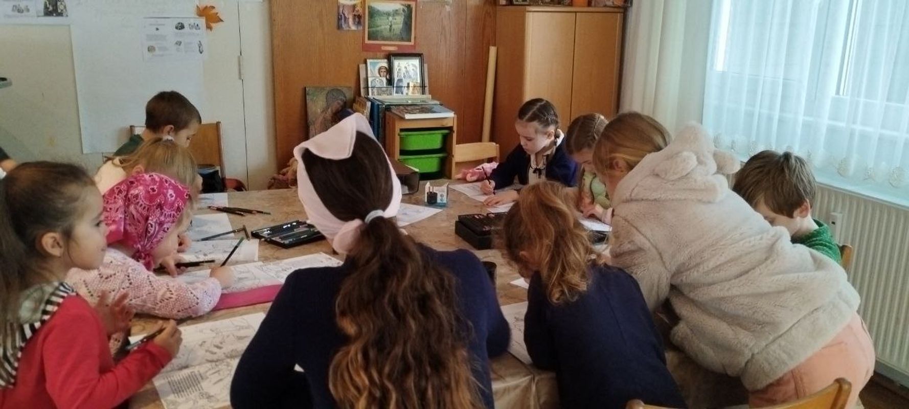 Während der Liturgie fand im Refektorium der Kirche eine Sonntagsschule für Kinder statt. Das Hauptthema war: das alttestamentliche Opfer für die Sünde und die neutestamentliche Reue „Ein Opfer für Gott ist ein zerbrochener Geist“ (Ps. 51,19).