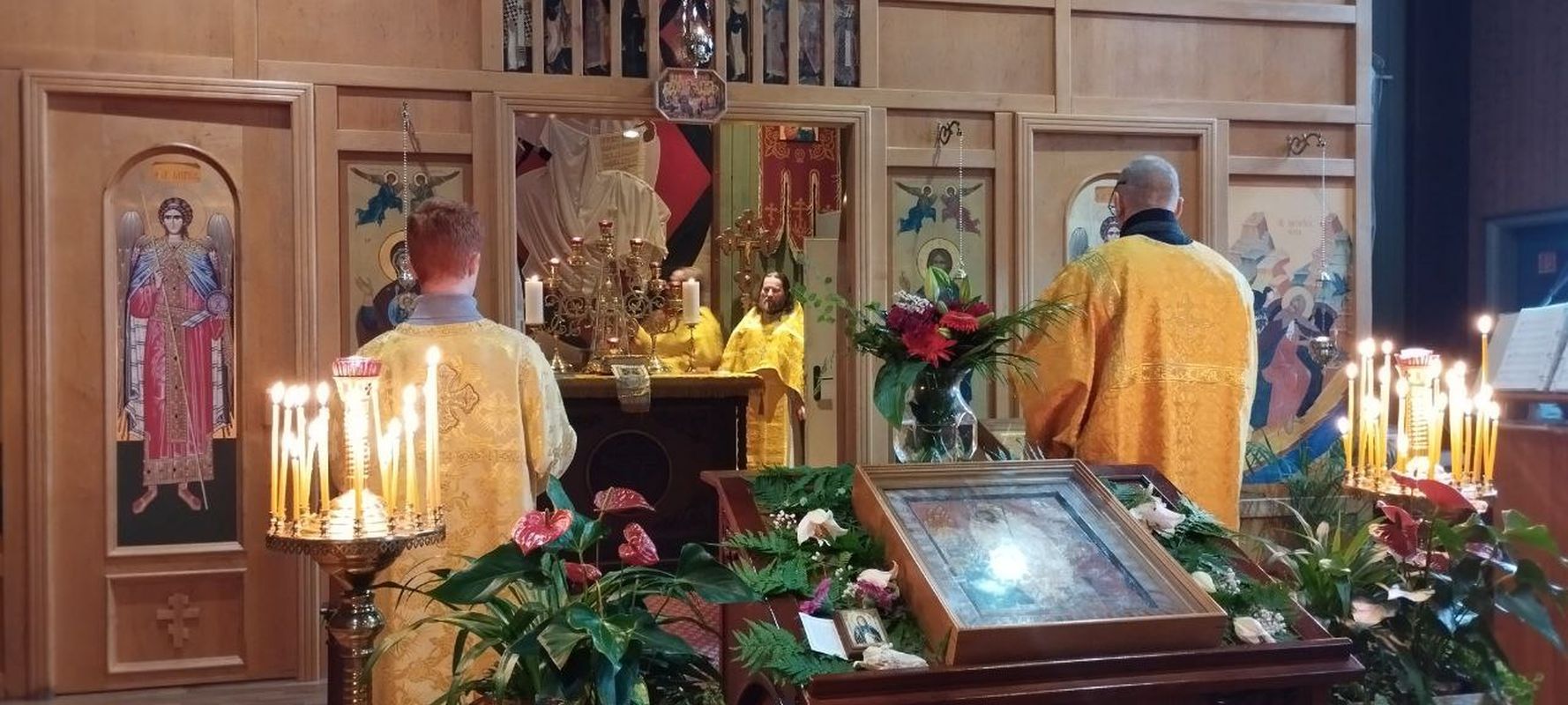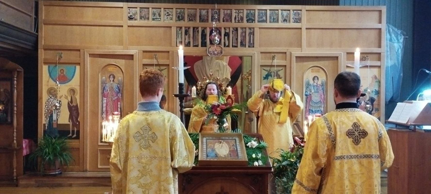 Der Gottesdienst wurde vom amtierenden Rektor des Tempels, Priester Dimitry Maksimovich, durchgeführt, gemeinsam mit Diakon Evgeniy Kik. Die liturgischen Hymnen wurden vom Pfarrchor unter der Leitung der Regentin Natalia Dyachina aufgeführt.