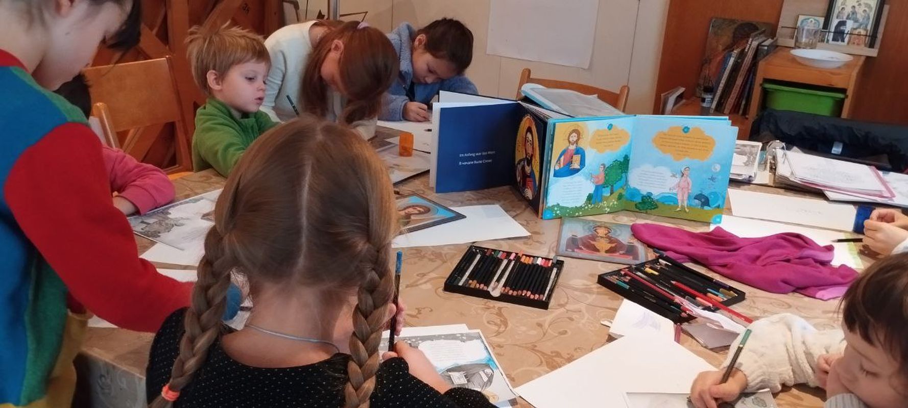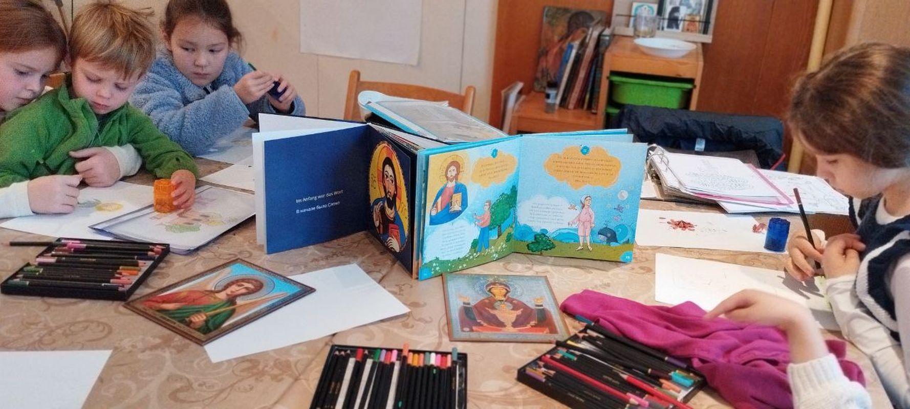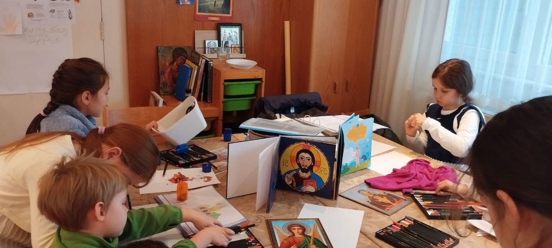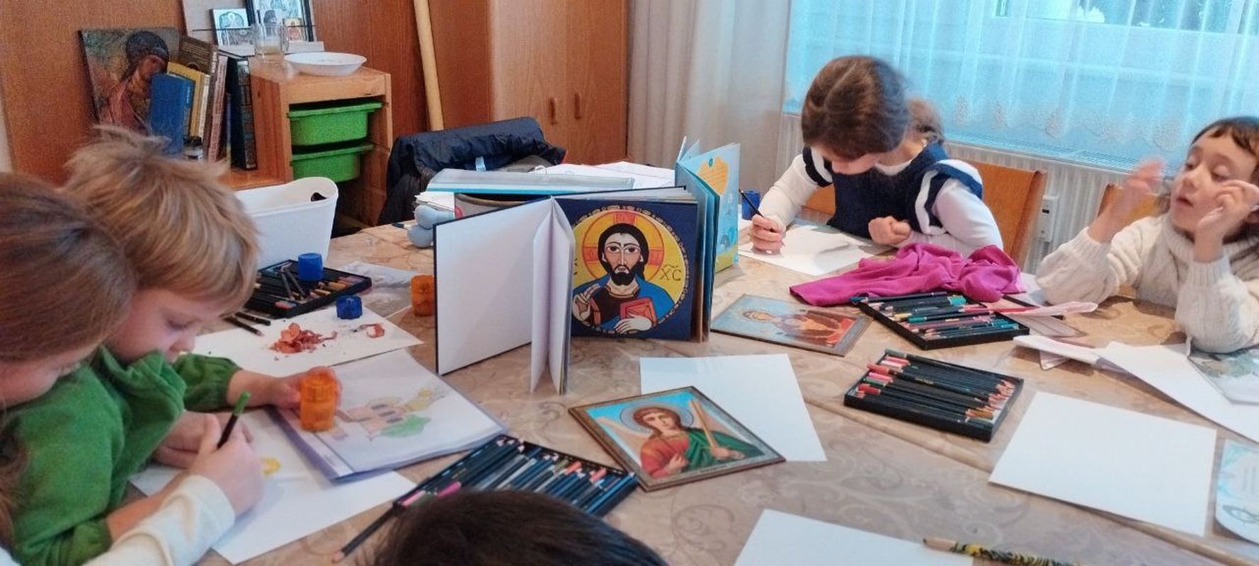 Während der Liturgie fand im Refektorium der Kirche eine Sonntagsschule für Kinder statt. Das Hauptthema war: das 2. der 10 Gebote des Propheten Moses.