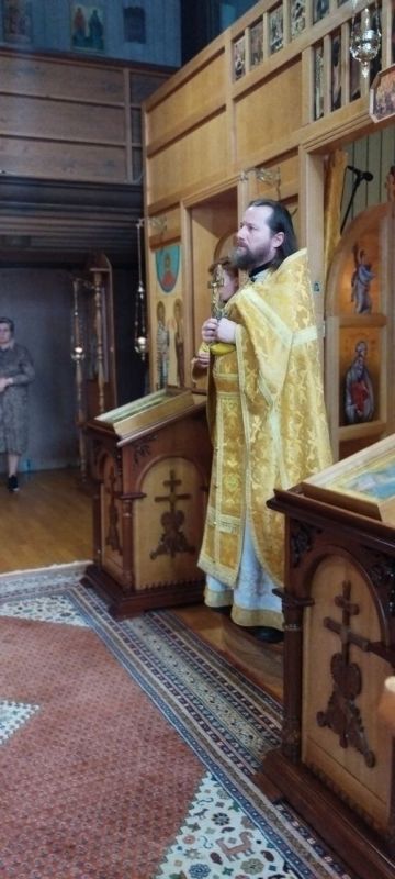 Службу совершал и.о.настоятеля храма иерей Димитрий Максимович в сослужении диакона Евгения Кик. Богослужебные песнопения исполнил приходской хор под руководством регента Наталии Дьячиной.
