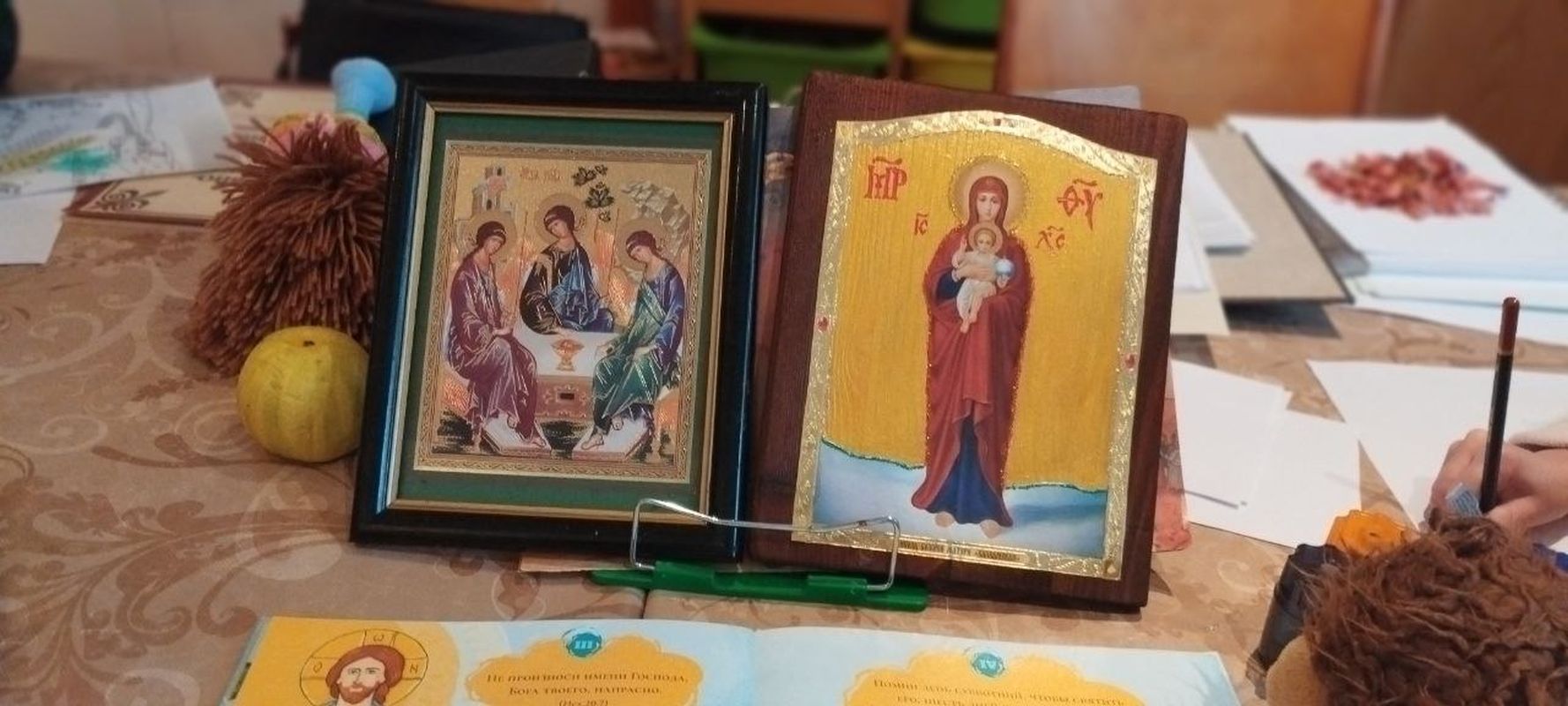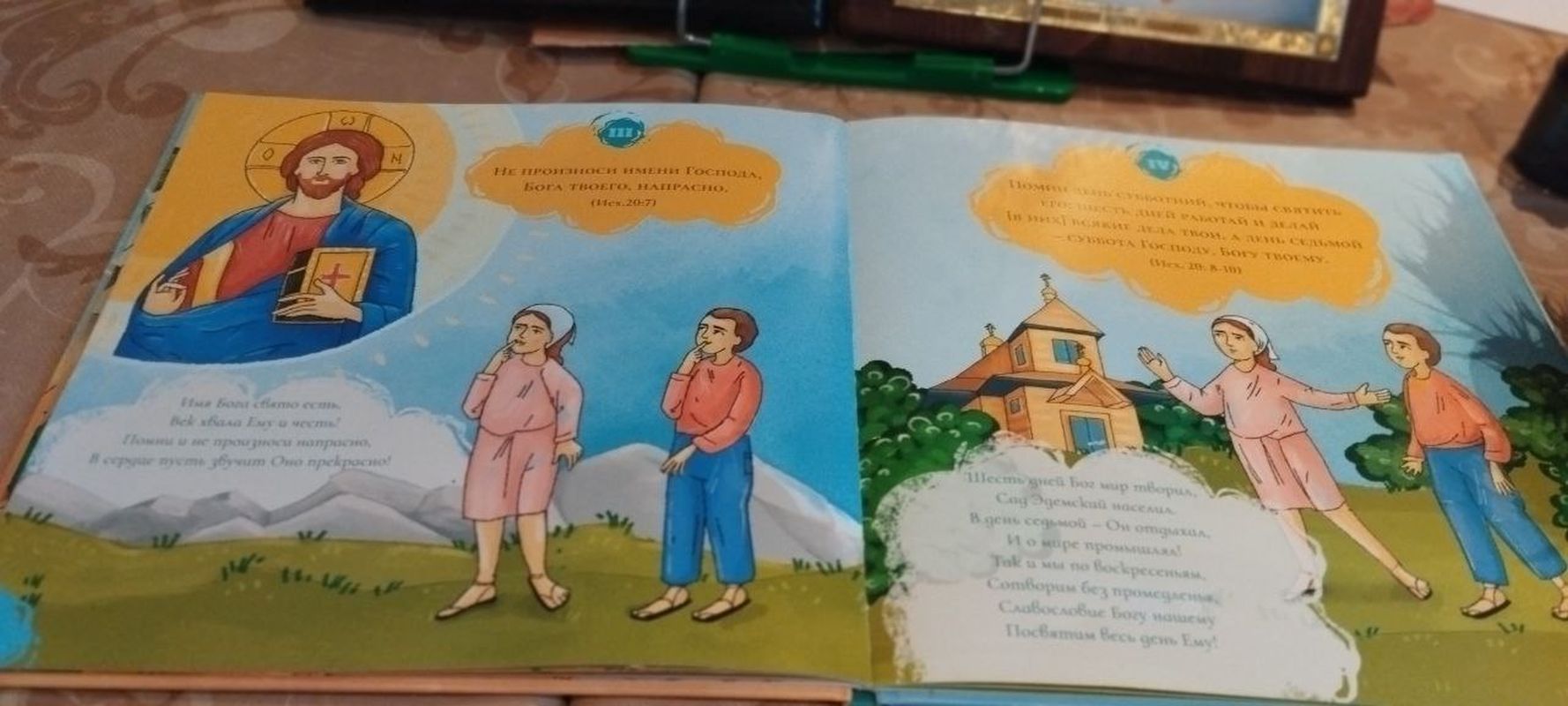 Во время литургии в трапезной храма проводилась воскресная школа для детей. Главной была тема: 3-ья из 10 заповедей пророка Моисея.
