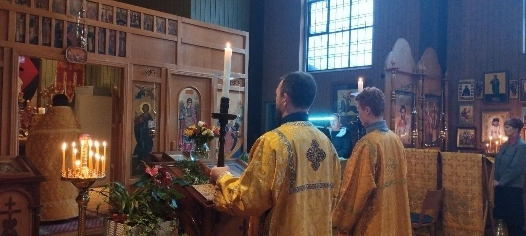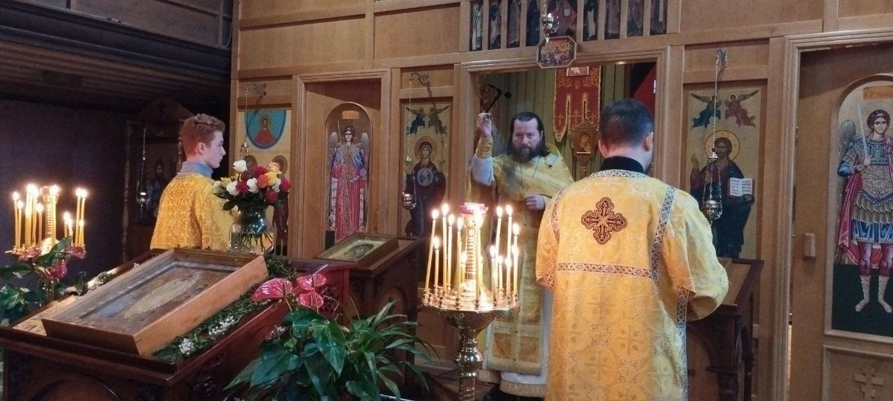 Службу совершал и.о.настоятеля храма иерей Димитрий Максимович. Богослужебные песнопения исполнила регент Наталия Дьячина. После службы был совершён водосвятный молебен.