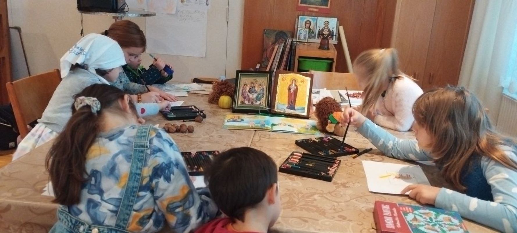 Während der Liturgie fand im Refektorium der Kirche eine Sonntagsschule für Kinder statt. Das Hauptthema war: 3. der 10 Gebote des Propheten Moses.