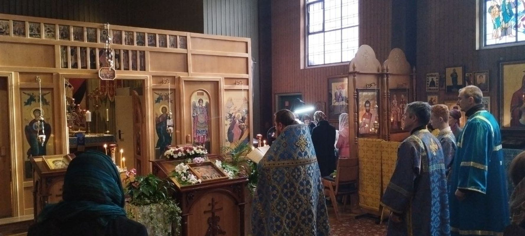 Der Dienst wurde durch Handeln erbracht Rektor Priester Dimitry Maksimovich. Die liturgischen Hymnen wurden vom Pfarrchor unter der Leitung der Regentin Natalia Dyachina aufgeführt.