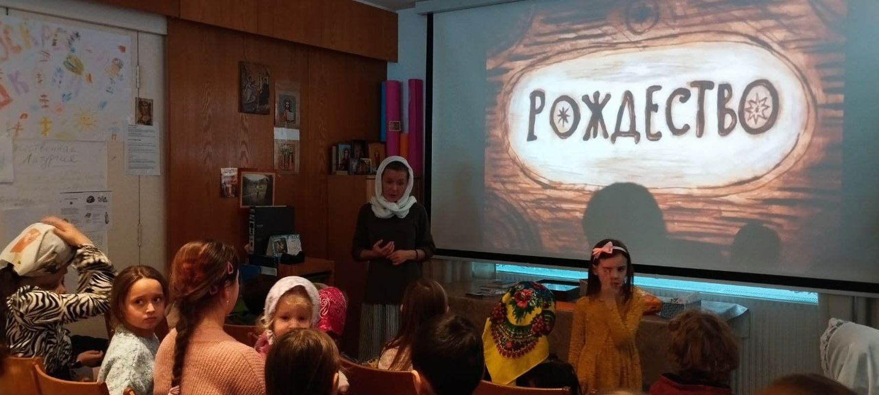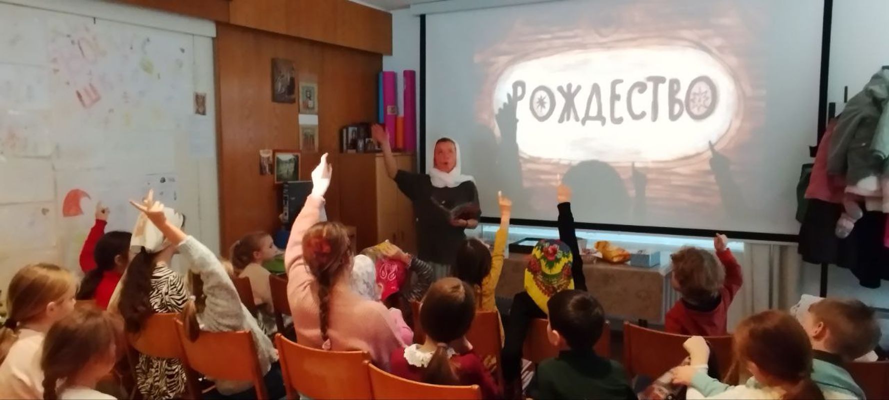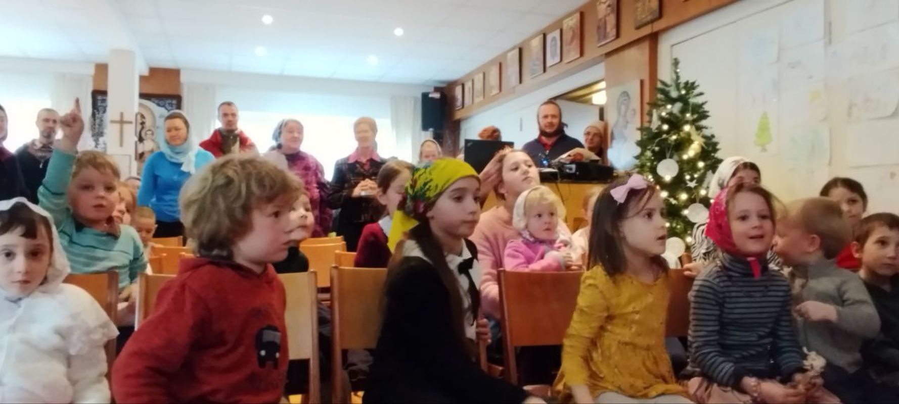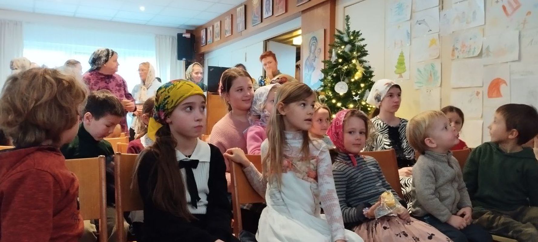 Nach der Liturgie fand im Refektorium der Kirche eine vorweihnachtliche Feier für Sonntagsschulkinder statt, die aus verschiedenen Wettbewerben und Quizfragen zu Feiertagsthemen bestand.