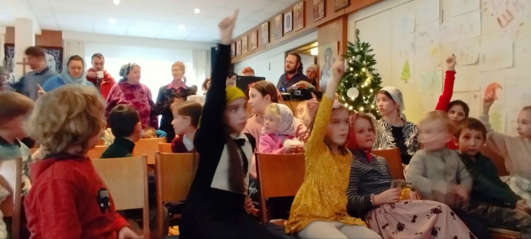 После литургии в трапезной храма проводился предрождественнский праздник из детей воскресной школы, состоявший из различных конкурсов и викторин на праздничную тематику.