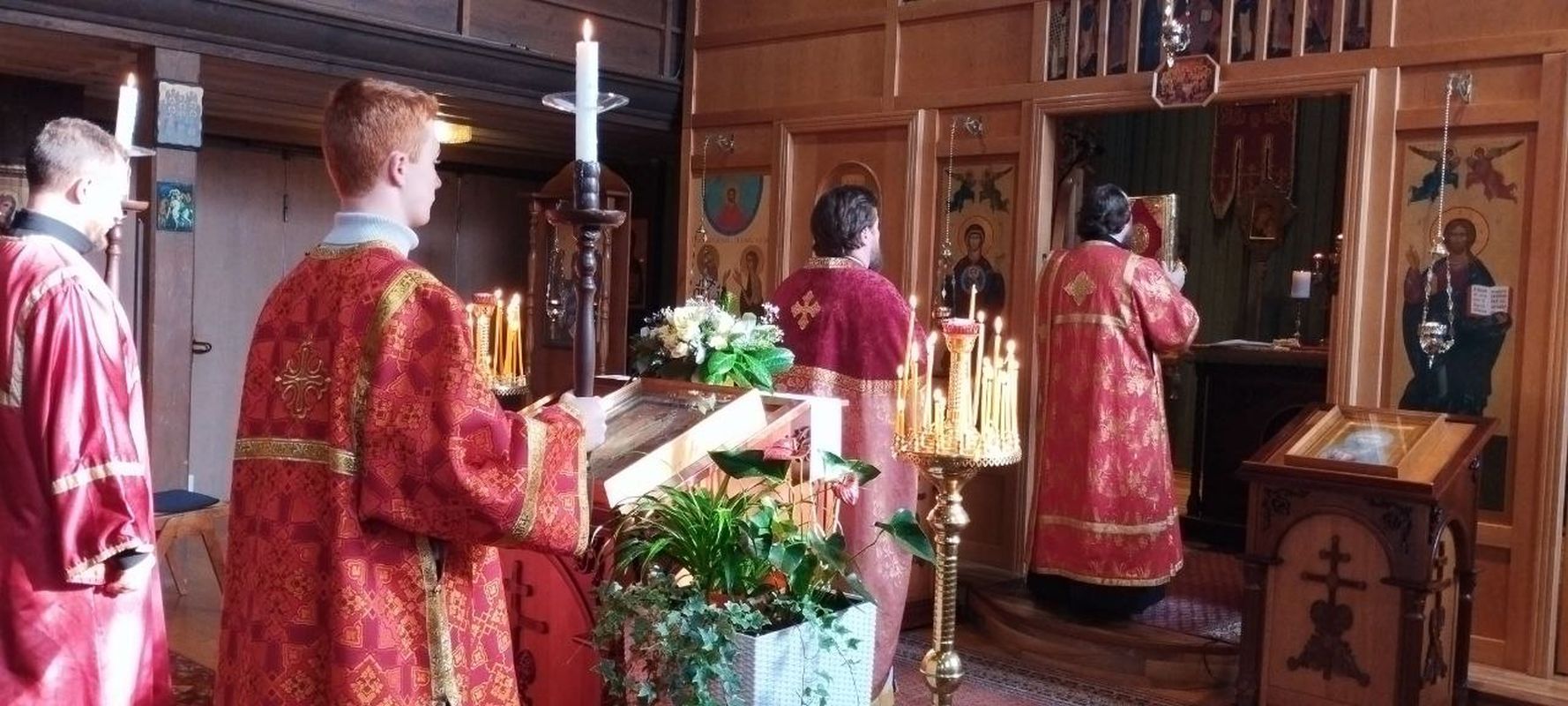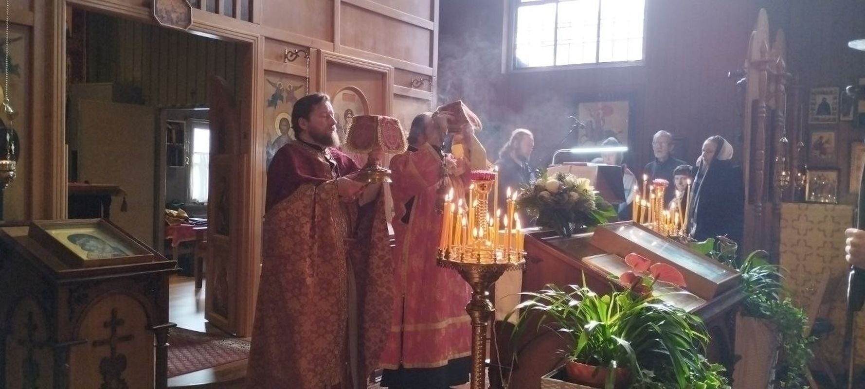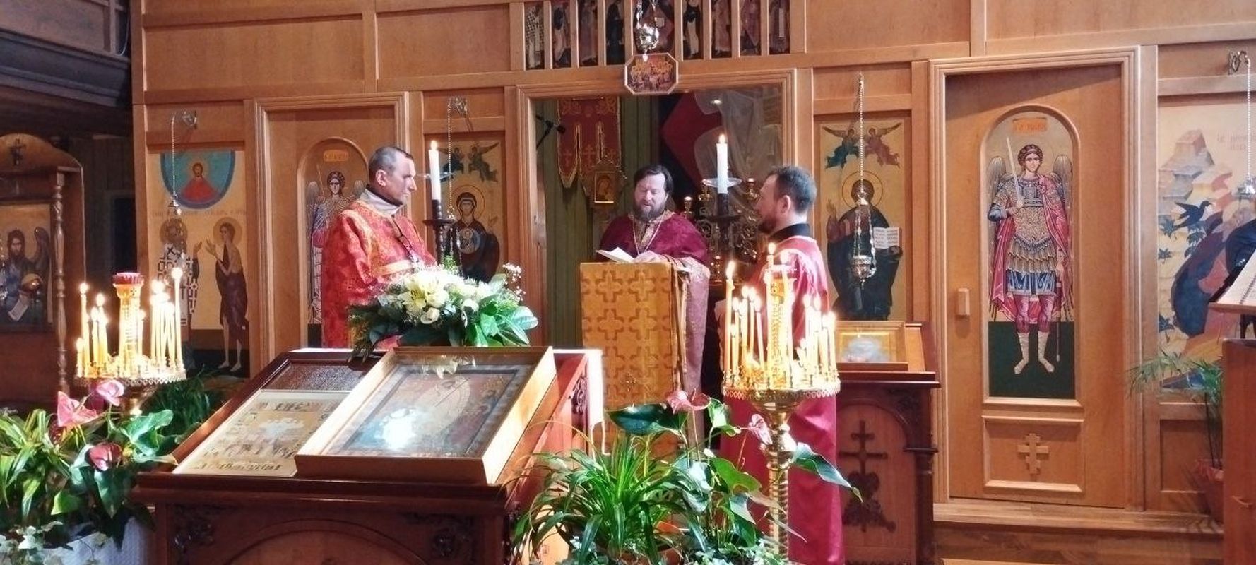 Der Gottesdienst wurde vom stellvertretenden Priester Dimitri Maksimovich im Zusammendienst des Diakons Eugenij Kick durchgeführt. Die Gottesdienstlieder wurden vom Gemeindechor unter der Leitung von Regentin Natalia Dyachina gesungen.