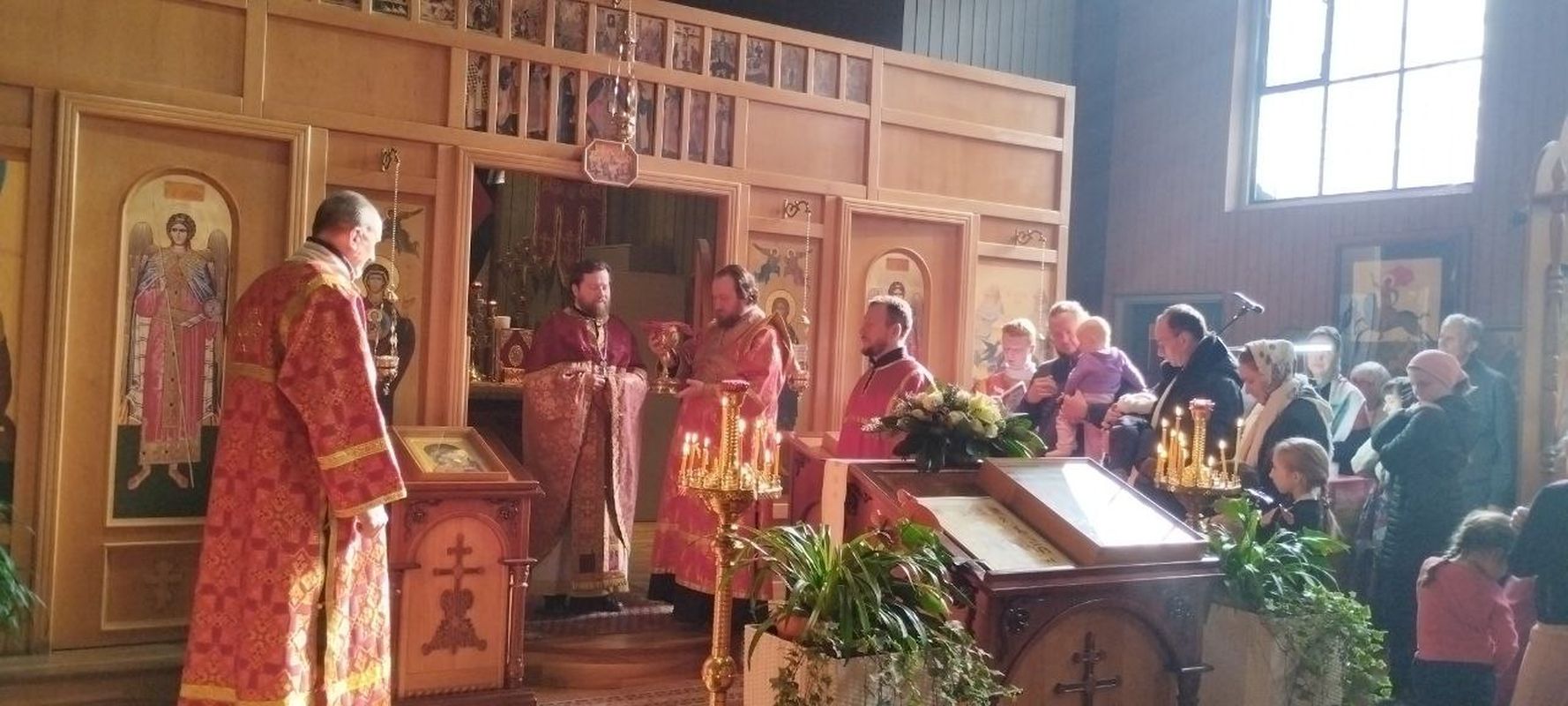Службу совершал и.о. настоятеля иерей Димитрий Максимович в сослужении диакона Евгения Кик. Богослужебные песнопения исполнял приходской хор под руководством регента Наталии Дьячиной.
