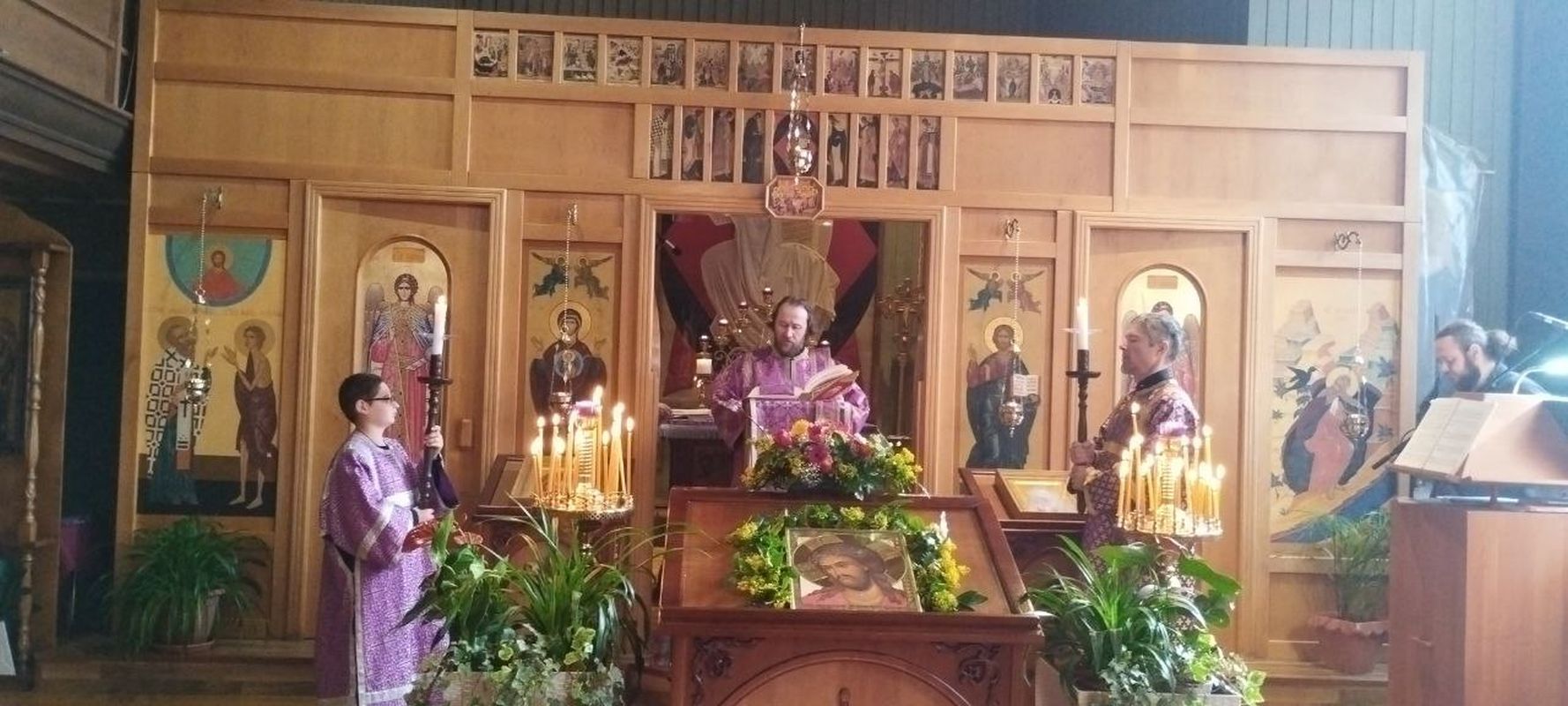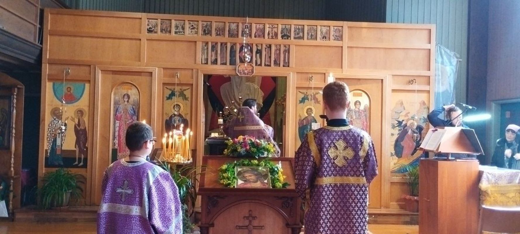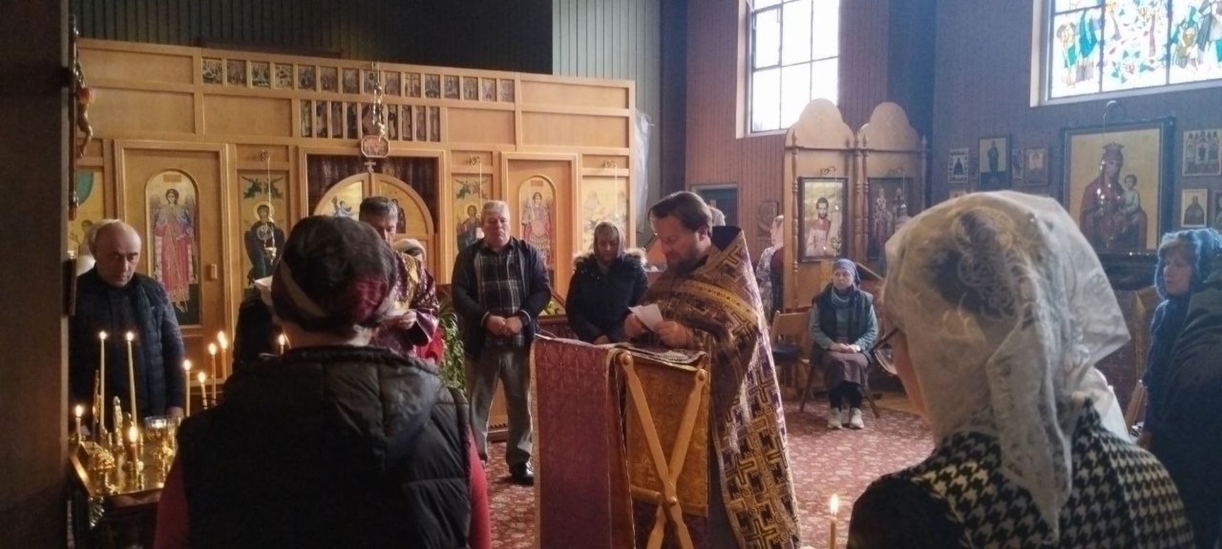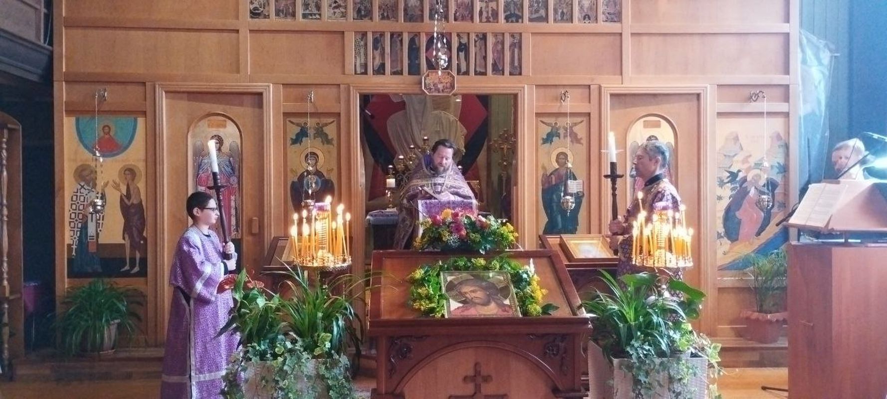 Службу совершал и.о. настоятеля иерей Димитрий Максимович в сослужении диакона Евгения Кик. Богослужебные песнопения исполнял приходской хор под руководством регента Наталии Дьячиной.