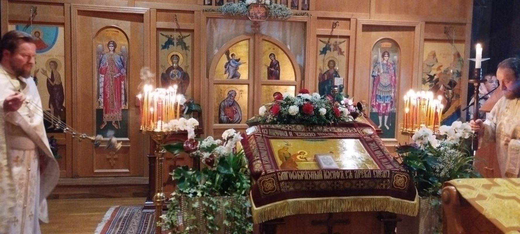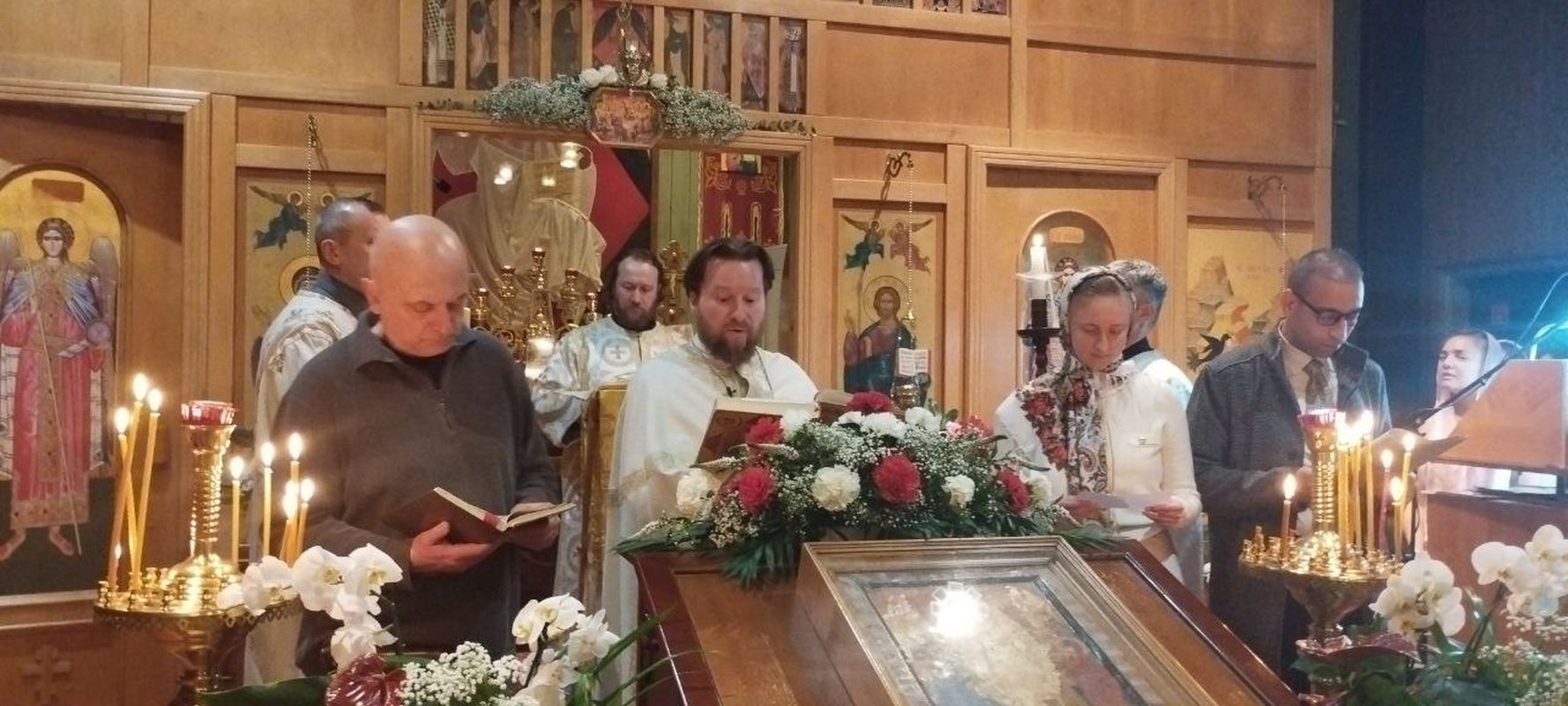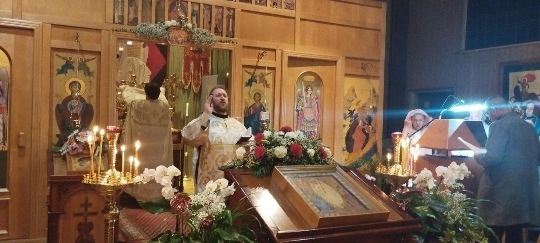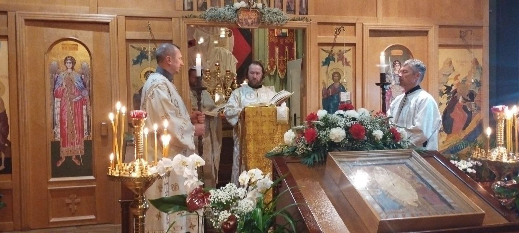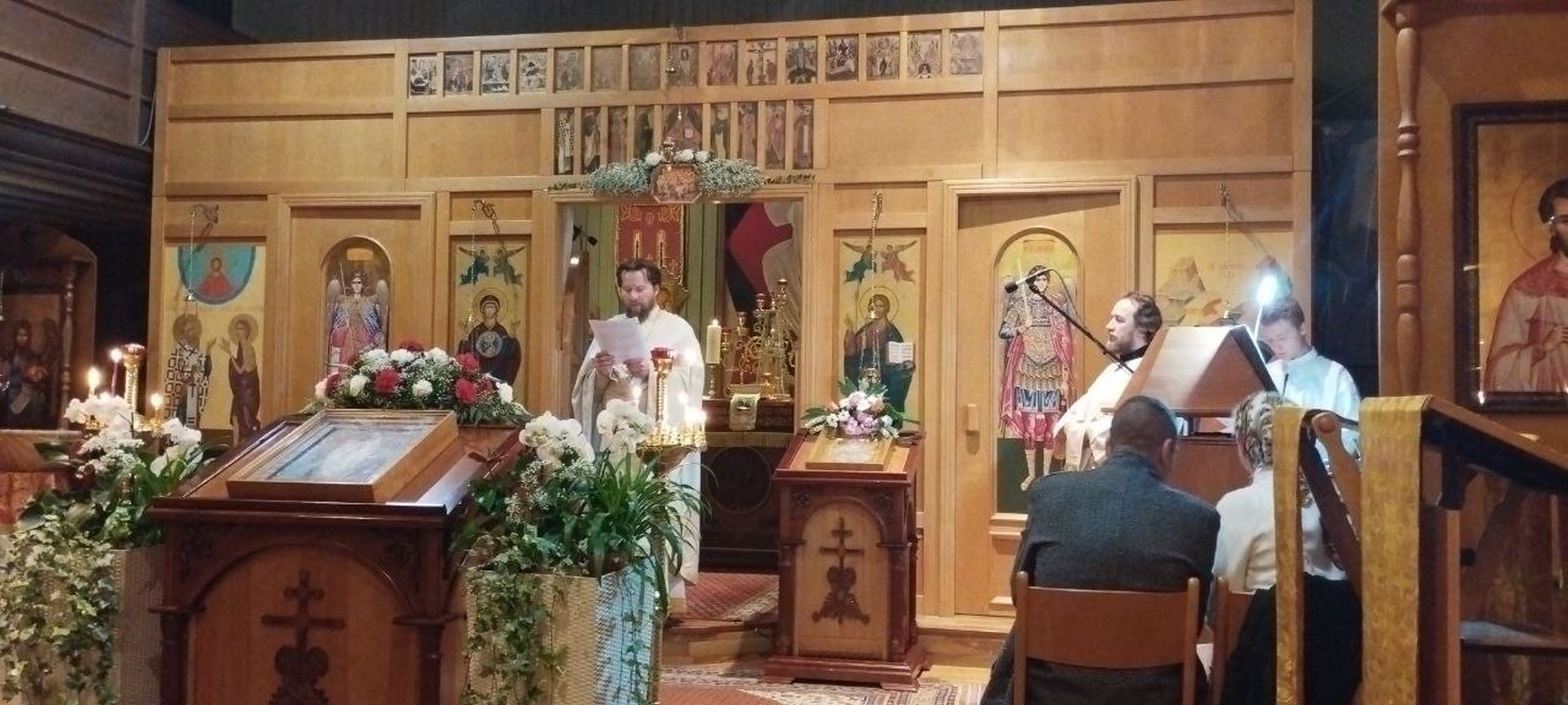 Der Gottesdienst wurde vom amtierenden Gemeindeleiter Priester Dimitrij Maksimovich in Konzelebration mit Diakon Evgenij Kick zelebriert. Die liturgischen Gesänge wurden vom Gemeindechor unter der Leitung von Kantorin Natalia Dyatchina vorgetragen.