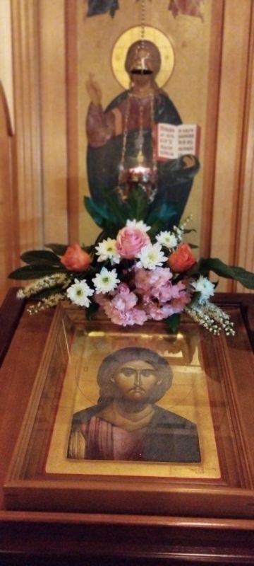 По окончании службы читалось Пасхальное послание нашего правящего - архиепископа Тихона и освящались Артос, куличи, яйца и предложенные снеди.