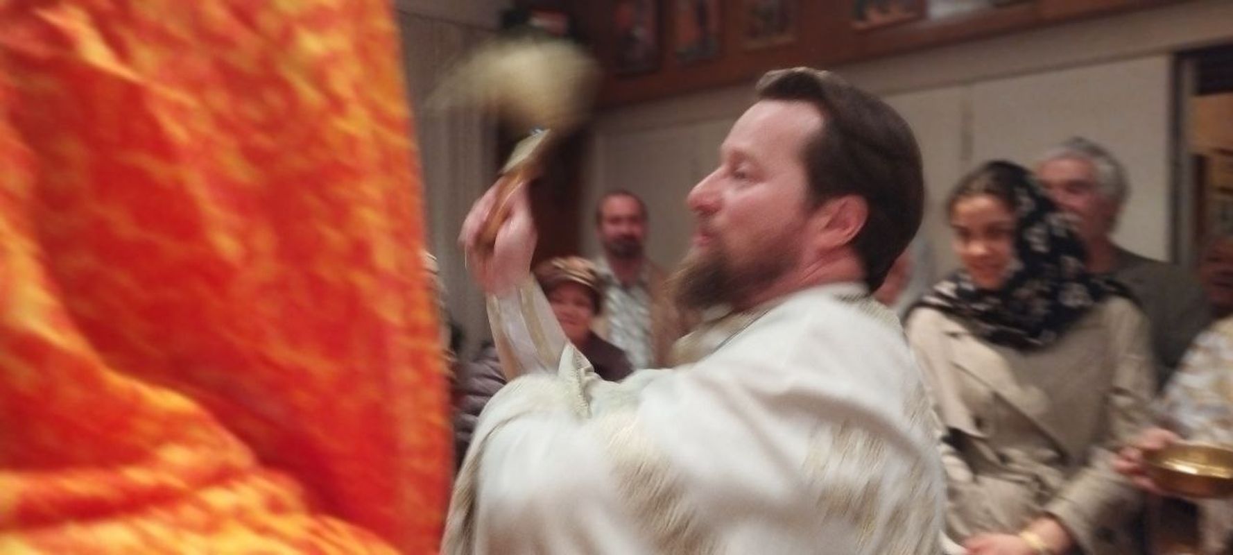Nach dem Gottesdienst wurde die Osterbotschaft unseres regierenden Erzbischofs Tichon verlesen und es wurden Artos-Brot, Osterkuchen, Eier und andere mitgebrachte Speisen gesegnet.