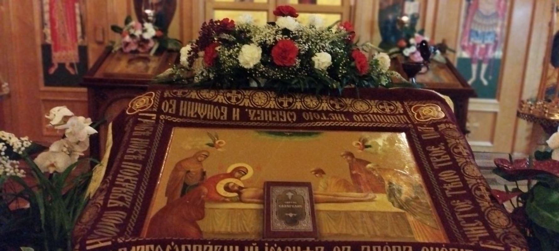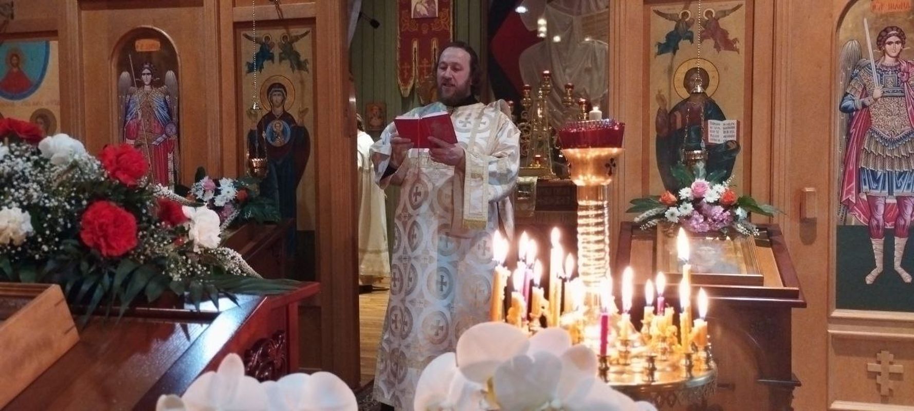 Службу совершал и.о. настоятеля иерей Димитрий Максимович в сослужении диакона Евгения Кик. Богослужебные песнопения исполнял приходской хор под руководством регента Наталии Дьячиной.