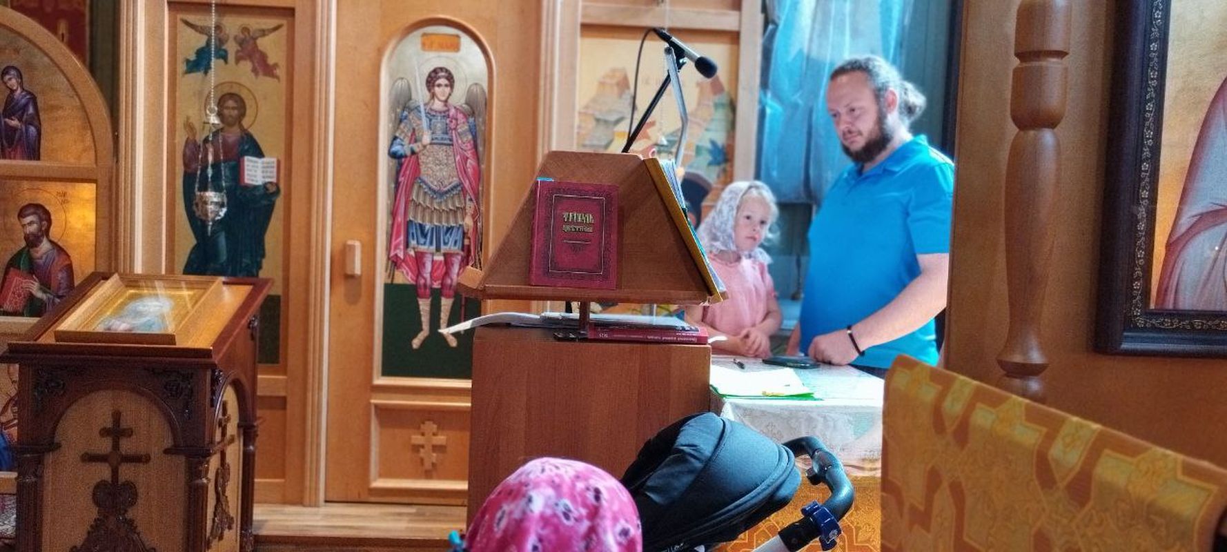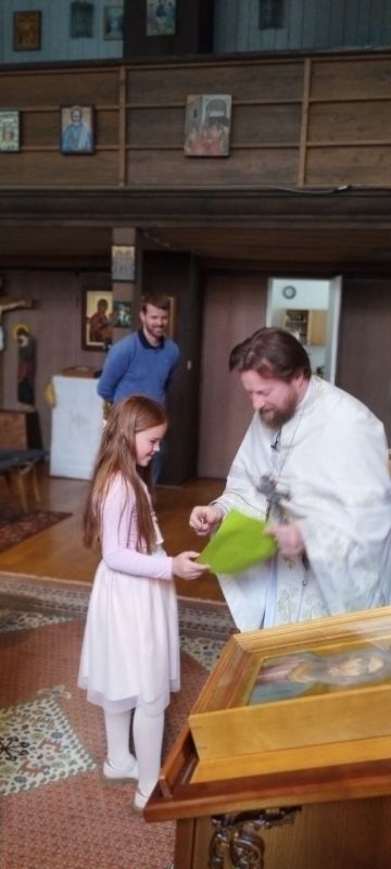 Während der Liturgie fand im Gemeindesaal der Kirche die Sonntagsschule für Kinder statt. Das Hauptthema war - Christus und die Samariterin.