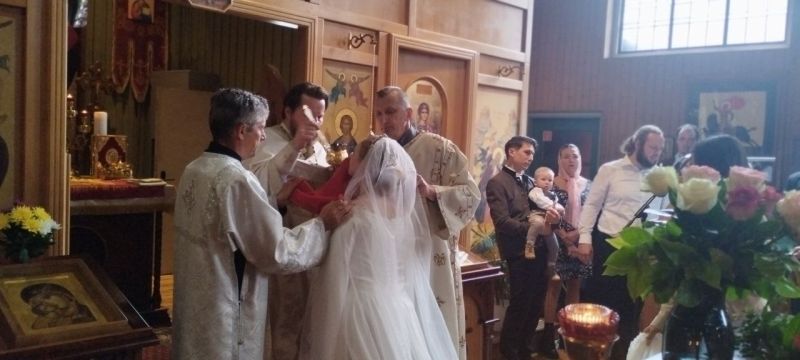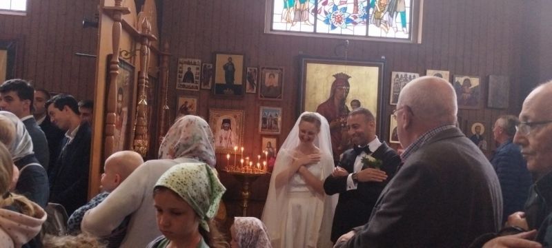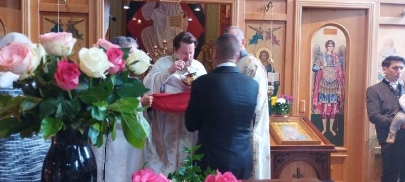 По окончании службы в собрании многочисленных гостей и прихожан совершалось таинство венчания над брачующимися Марком и Марией. Возглавляли таинство протоиерей Илия Лимбергер - настоятель Свято-Никольского собора города Штутгарта и иерей Димитрий Максимович - настоятель нашего прихода. Исполнялись песнопения 3 хорами на разных языках. Сердечные поздравления и молитвенные благопожелания нашим молодожёнам Марку и Марии!