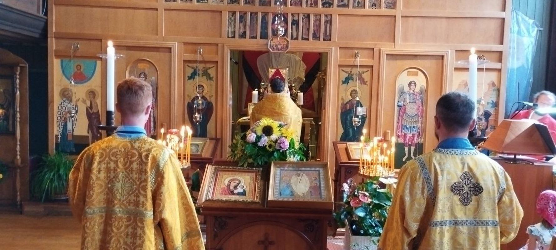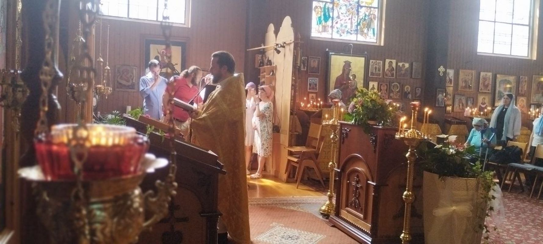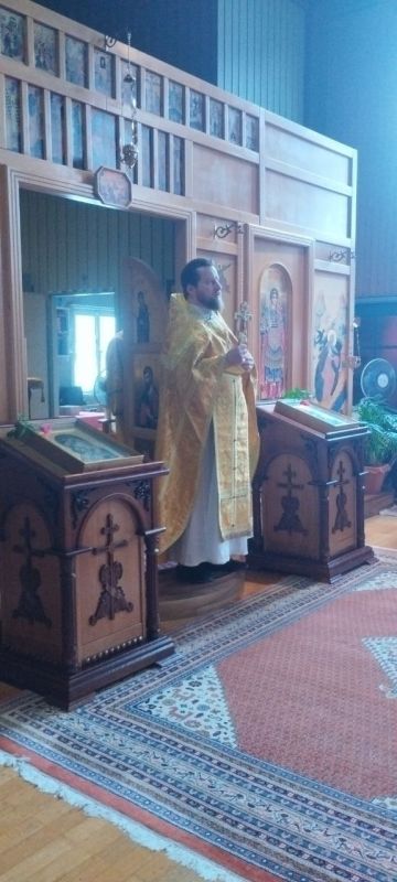 Службу совершал и.о. настоятеля иерей Димитрий Максимович. Проповедь была посвящена святым, выходцам из немецкой земли: преподобномученице Елизавете (дочери Людвига 4, герцога Гессен-Дармштадского) и блаженному Прокопию, Христа ради юродивому, Устюжскому чудотворцу (купцу из Бремена).
