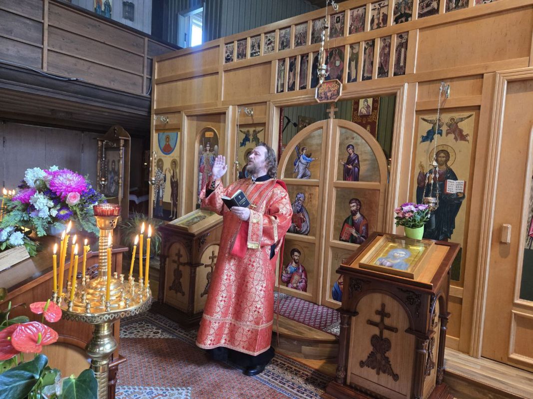 Службу совершал и.о. настоятеля иерей Димитрий Максимович в сослужении диакона Евгения Кик. Проповедь была посвящена воскресному евангельскому чтению о хождении Христа по воде.