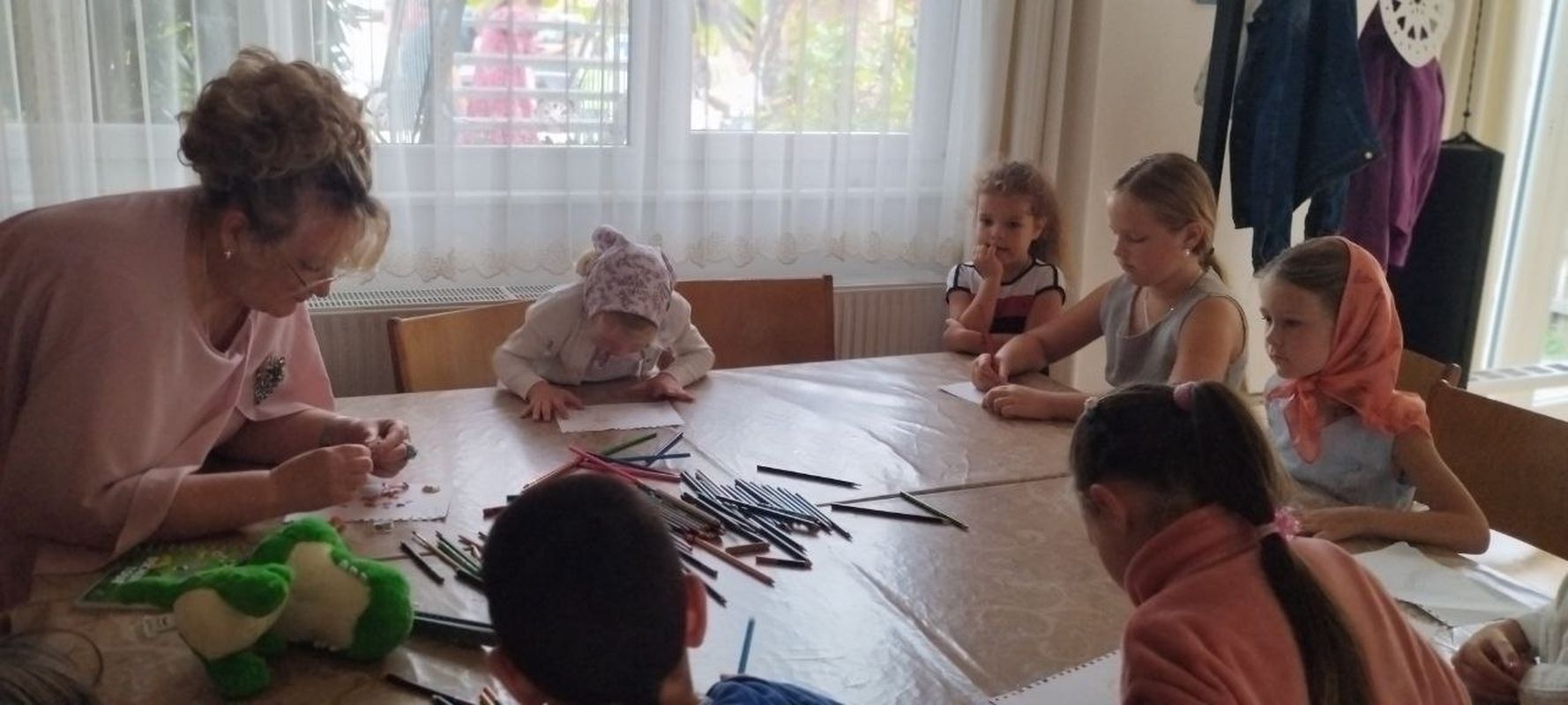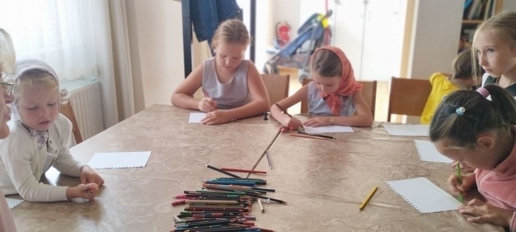 Во время литургии в трапезной храма Наталией Кригер проводилась детская воскресная школа. Главной темой было