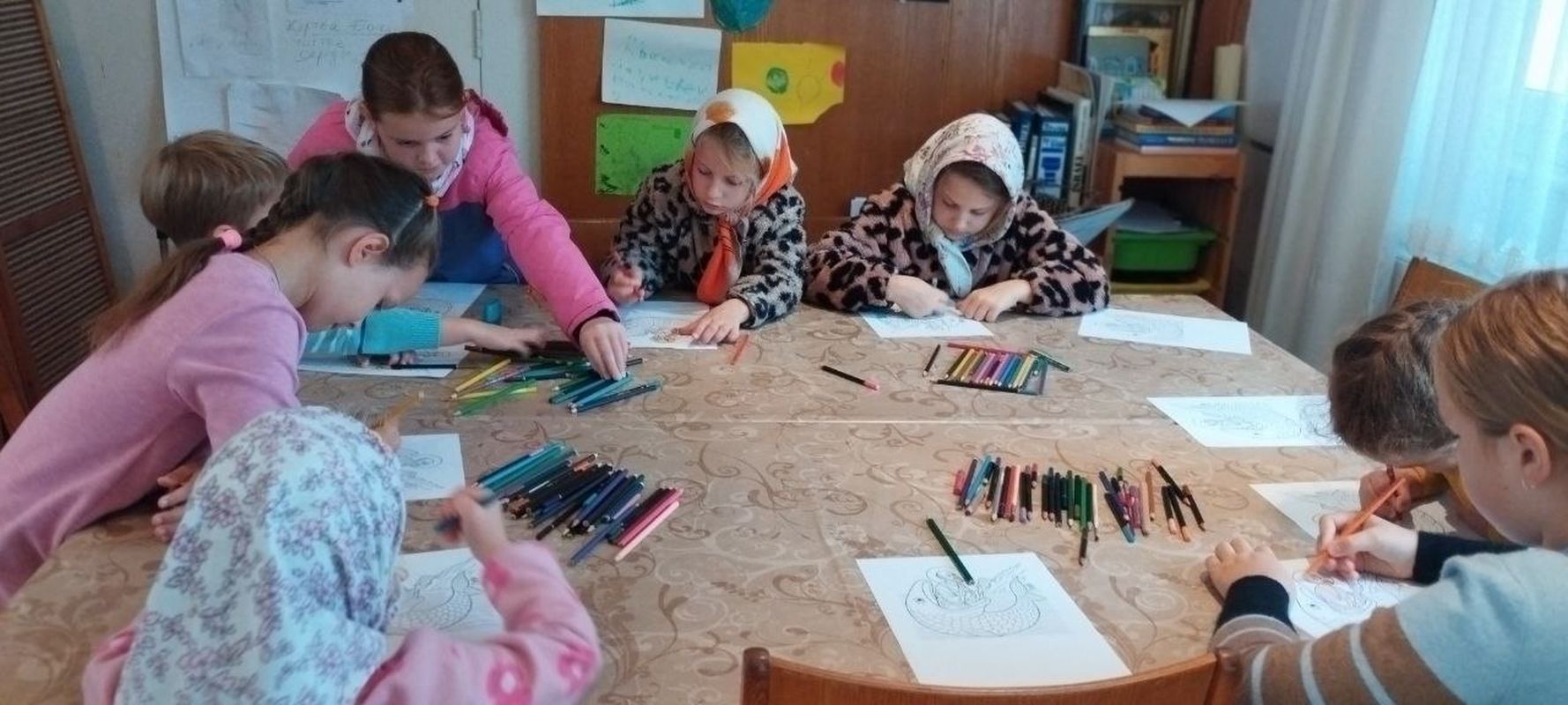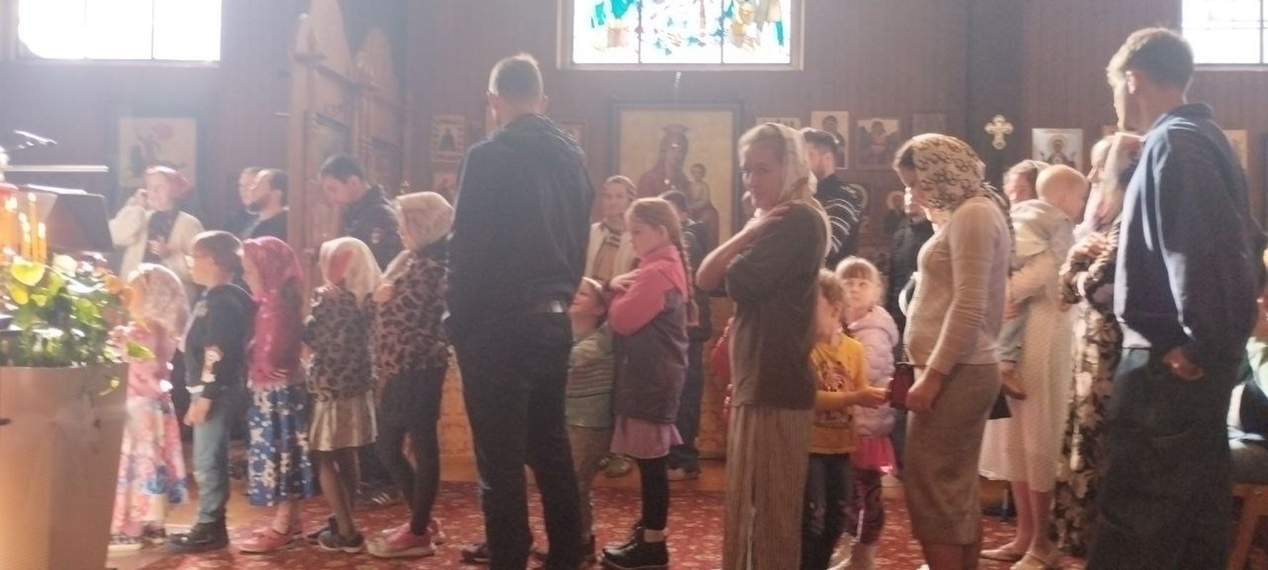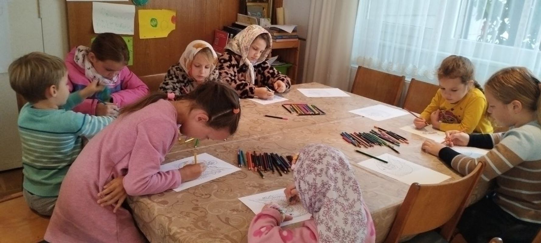 Во время литургии в трапезной храма Наталией Кригер проводилась детская воскресная школа.