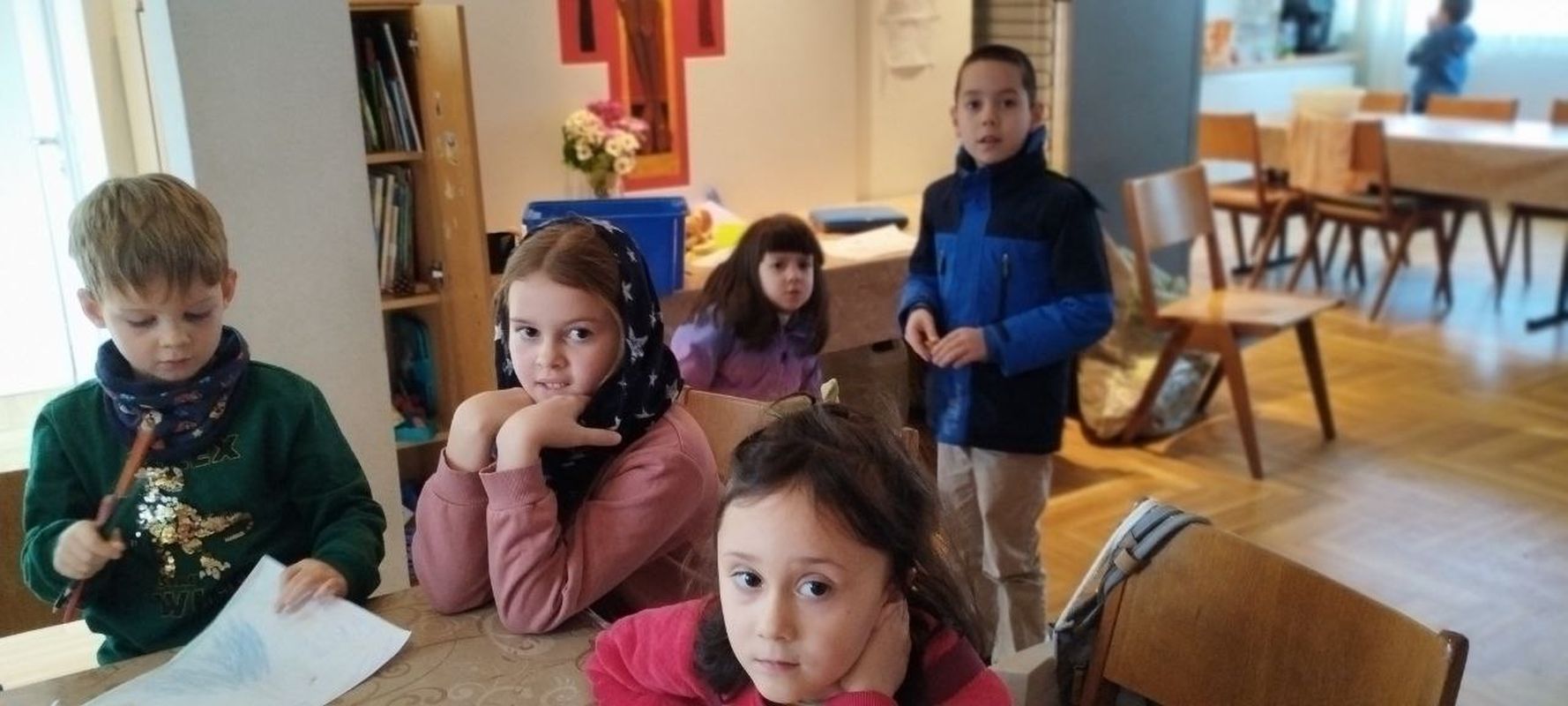 Во время литургии в трапезной храма Наталией Кригер проводилась детская воскресная школа на немецком языке. Основная тема урока - Ангела-Хранители и свобода выбора человека.