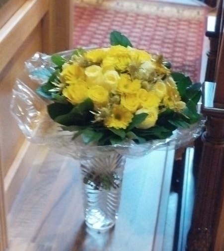 После службы староста прихода Лидия Леонхард от лица всего прихода поздравила отца Дмитрия с 9-ой годовщиной его пресвитерской хиротонии. Прихожане вручили отцу настоятелю красивый букет