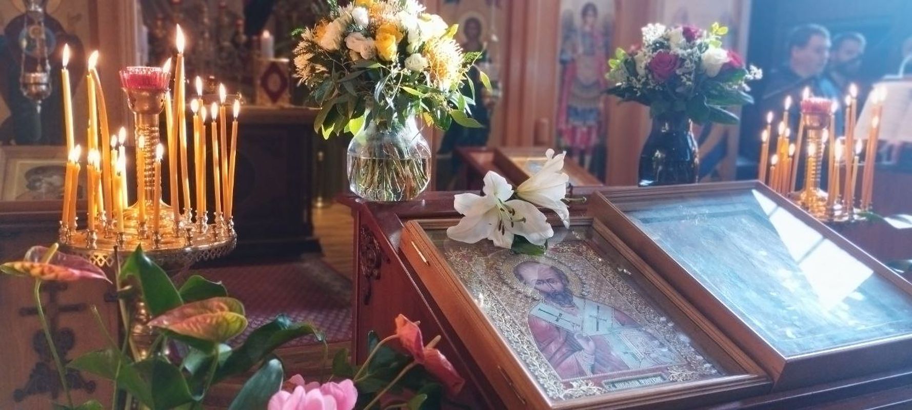 Во время литургии в трапезной храма Наталией Кригер проводилась детская воскресная школа. Главной темой был рассказ о святителе и чудотворце Николае.
