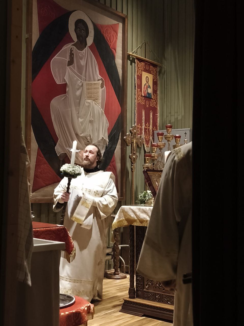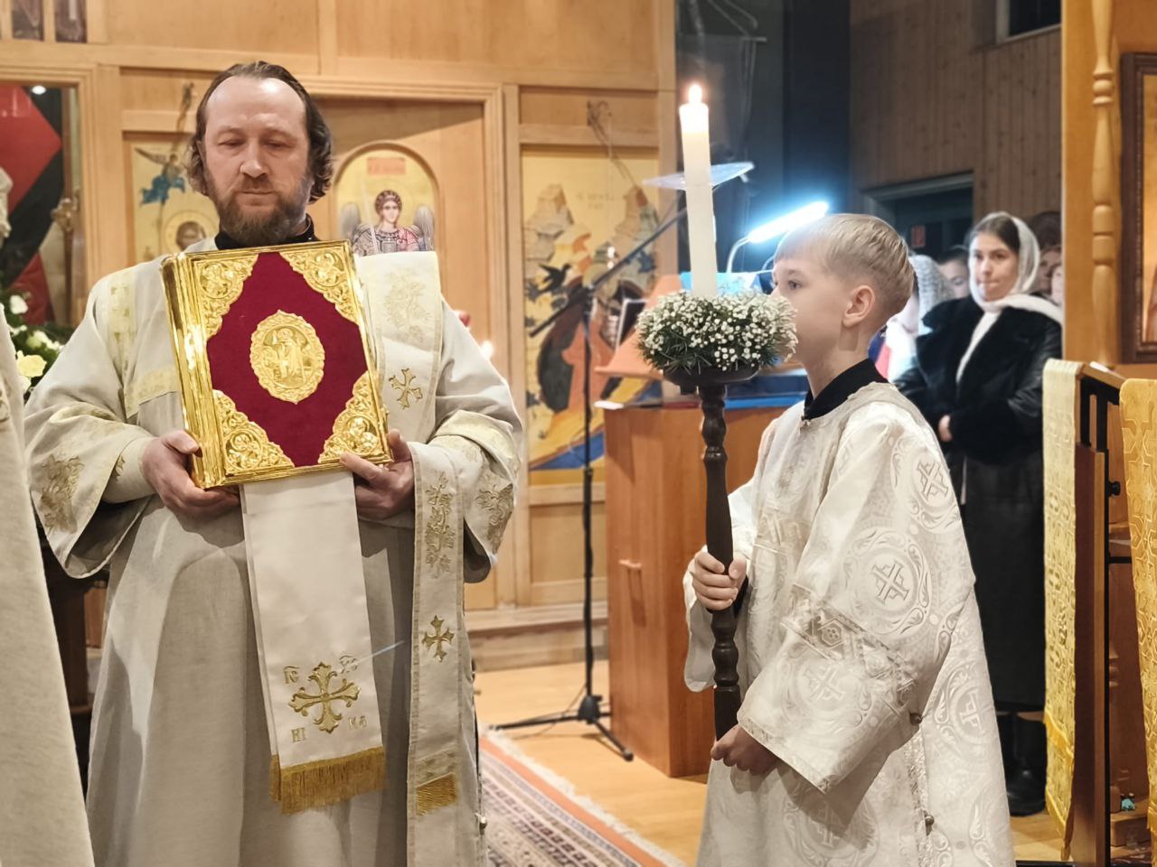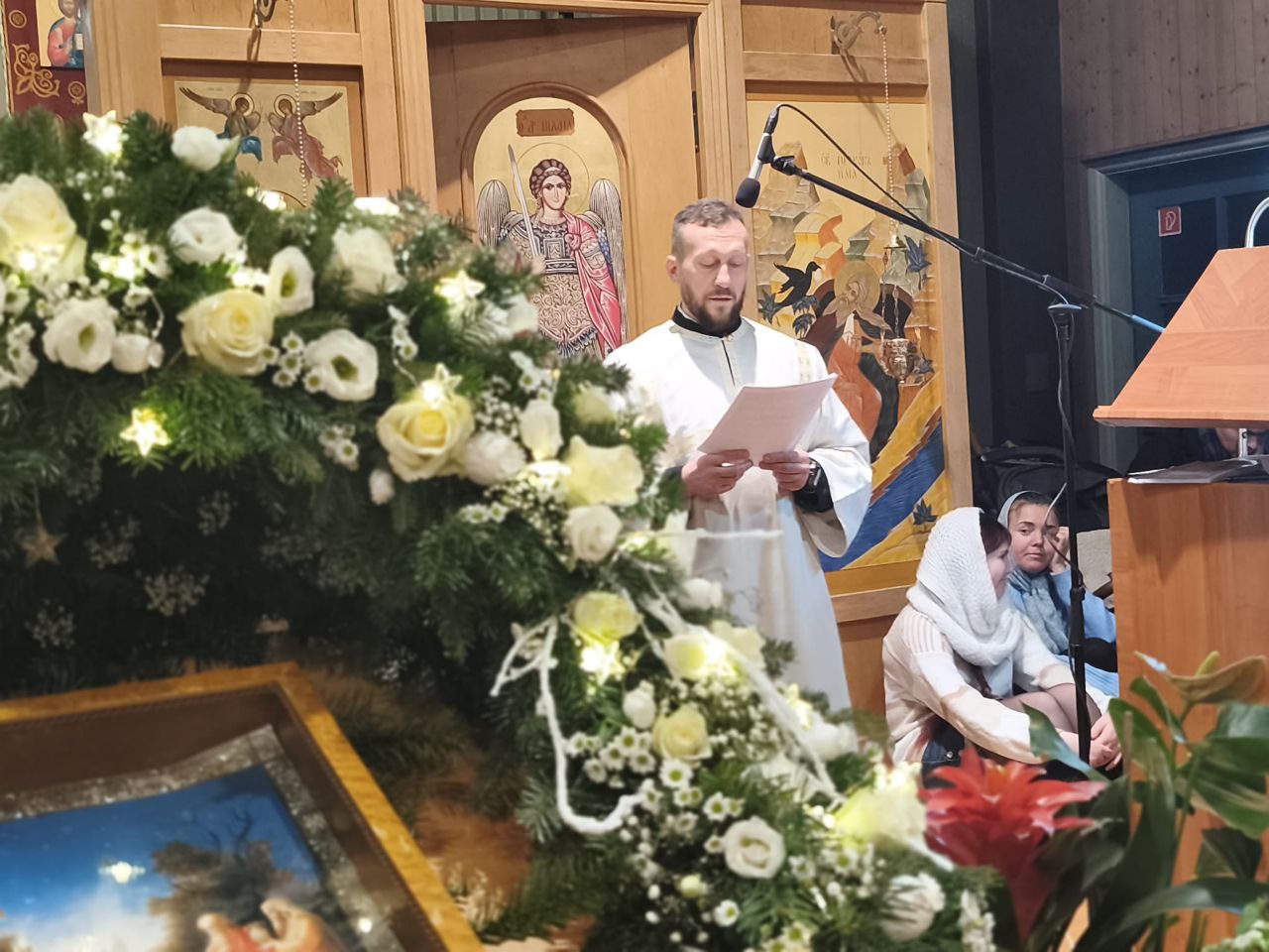 После литургии читалось Рождественское послание нашего правящего архиерея - архиепископа Рузского Тихона (Зайцева), управляющего Берлинско-Германской епархией на русском и немецком языках.