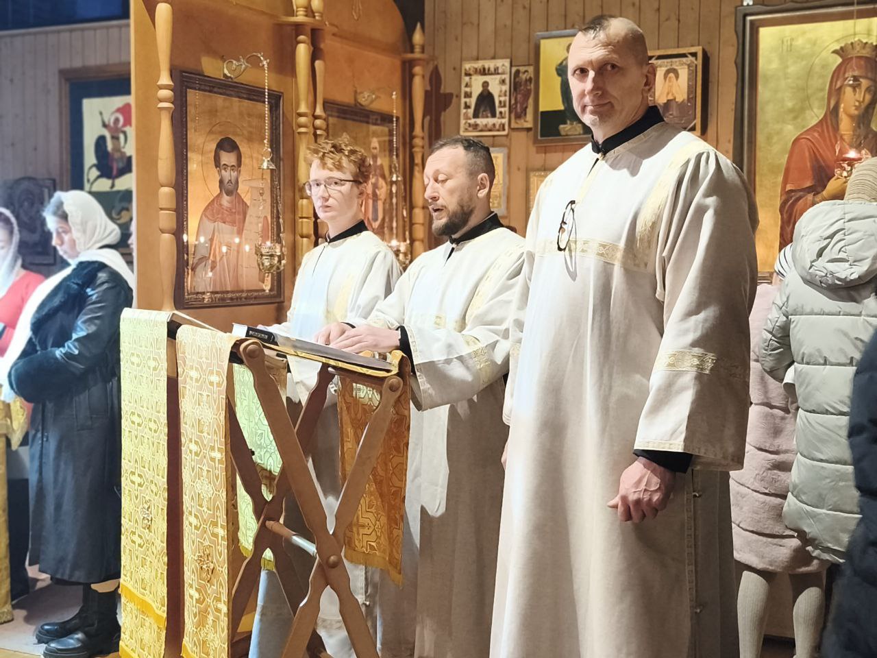 Службу совершал и.о. настоятеля иерей Димитрий Максимович в сослужении диакона Евгения Кик. Богослужебные песнопения исполнил приходской хор под руководством регента Галины Райманн.