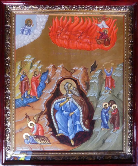 Один из величайших пророков и первый девственник Ветхого Завета. Он родился в Фесвии Галаадской в колене Левиином за 900 лет до Рождества Христова. Когда родился Илия, отцу его Соваку было видение, что благообразные мужи беседовали с младенцем, пеленали огнем и питали пламенем огненным. С юных лет он поселился в пустыне и жил в строгом подвиге поста и молитвы. Призван на пророческое служение в царствование царя Ахава-идолопоклонника, который поклонялся Ваалу (солнцу) и заставлял народ еврейский делать то же. Господь послал Илию к Ахаву и повелел предсказать ему, что если он и его народ не обратятся к истинному Богу, то его царство постигнет голод. Ахав не послушался пророка, и в стране настала засуха и большой голод. Во время голода Илия прожил год в пустыне, куда ему вороны носили пищу, и более двух лет у одной вдовы в г. Сарепте. Через три с половиною года Илия вернулся в Израильское царство и сказал царю и всему народу, что все бедствия израильтян происходят оттого, что они забыли истинного Бога и стали поклоняться идолу Ваалу. Чтобы доказать заблуждение израильтян, Илия предложил сделать два жертвенника – один Ваалу, а другой – Богу, и сказал: «Принесем жертвы, и если огонь с неба сойдет на жертвенник Ваала, значит, он истинный Бог, а если нет, то идол» (см. 3Цар.18,21-24). Сначала сделали жертвенник Ваалу, набросали дров, закололи быка, а жрецы Вааловы стали молиться своему идолу: «Ваал, Ваал, пошли нам с неба огонь». Но ответа никакого не было, и огонь с неба на Ваалов жертвенник не сошел. Вечером Илия сделал свой жертвенник, положил дрова, полил их прежде водою и стал молиться Богу. И вдруг с неба упал огонь и попалил не только дрова и жертву, но и воду и камни жертвенника. Когда народ увидел это чудо, то прославил истинного Бога и снова в Него уверовал.