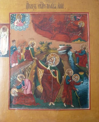 За свою пламенную ревность о Славе Божией пророк Илия был взят на небо живым в огненной колеснице. Свидетелем этого чудного восхождения был пророк Елисей. Затем в Преображении Господнем он явился вместе с пророком Моисеем и предстал пред Иисусом Христом, беседуя с ним на горе Фавор. По преданию Святой Церкви, пророк Илия будет Предтечею Страшного Второго Пришествия Христа на землю и во время проповеди примет телесную смерть.